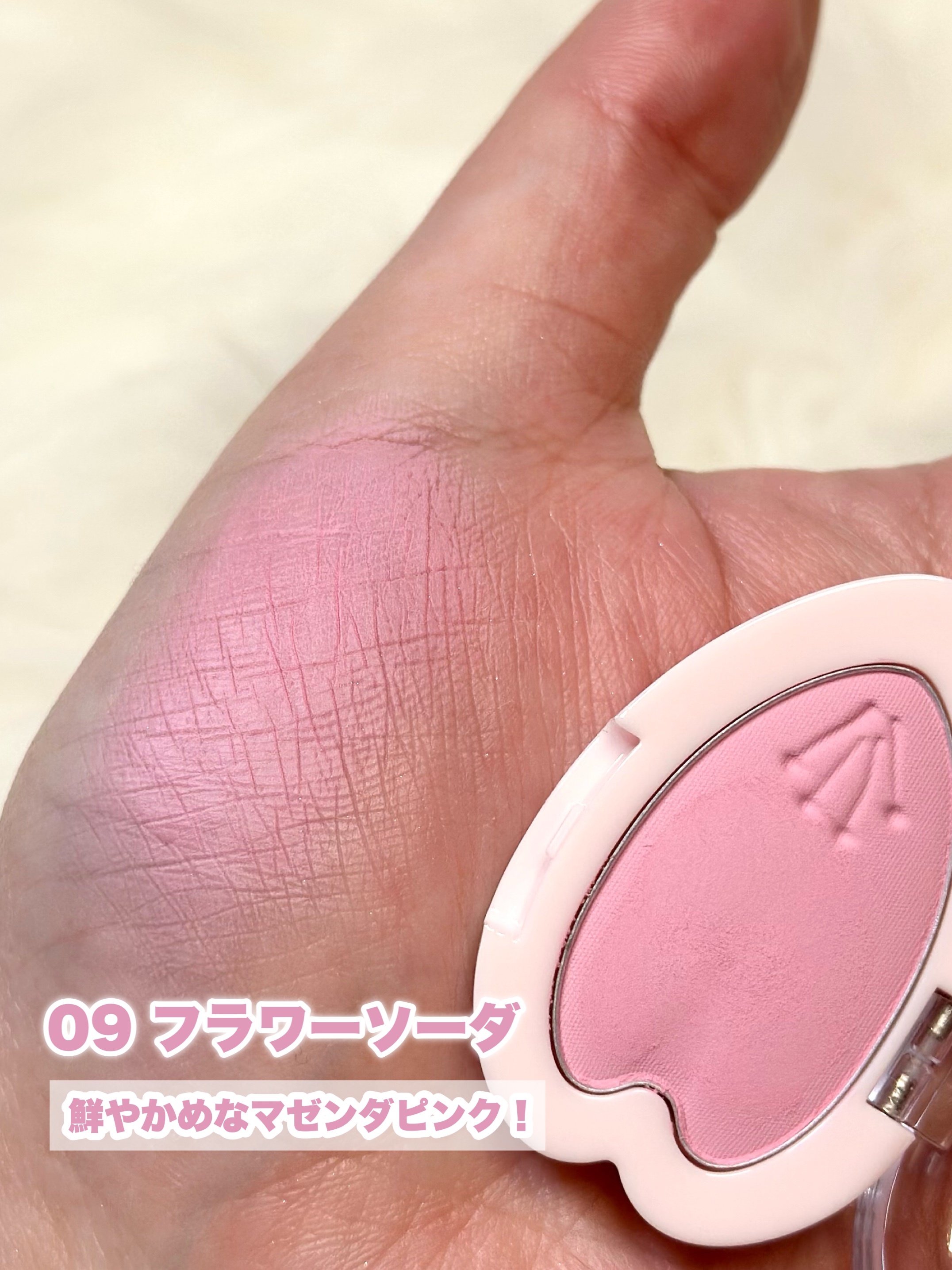 見た目も可愛いチークポップ♡ ナチュラルな血色感とツヤ感が美しい。 ダントツのツヤ感♡ちょっとトーンが低めなので膨張せずツヤツヤを楽しめます◎ めちゃくちゃ好き!ふわっとしつつもツヤっと♡絶妙な血色感! パケがコロンとしたハートで可愛い♡ 肌に溶け込む血色感。チーク苦手な人にイチオシ!どちらかと言うとイエベ向け ほわほわ細かい粉質◎ さすがコスメオタのサラさんプロデュース!!