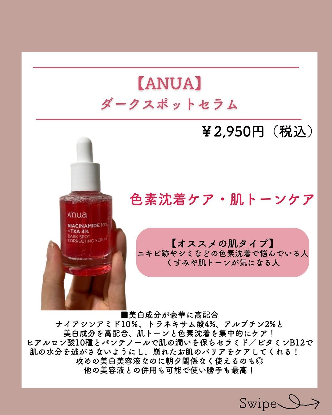 Anua 桃70%ナイアシンセラム | 2,579円 |