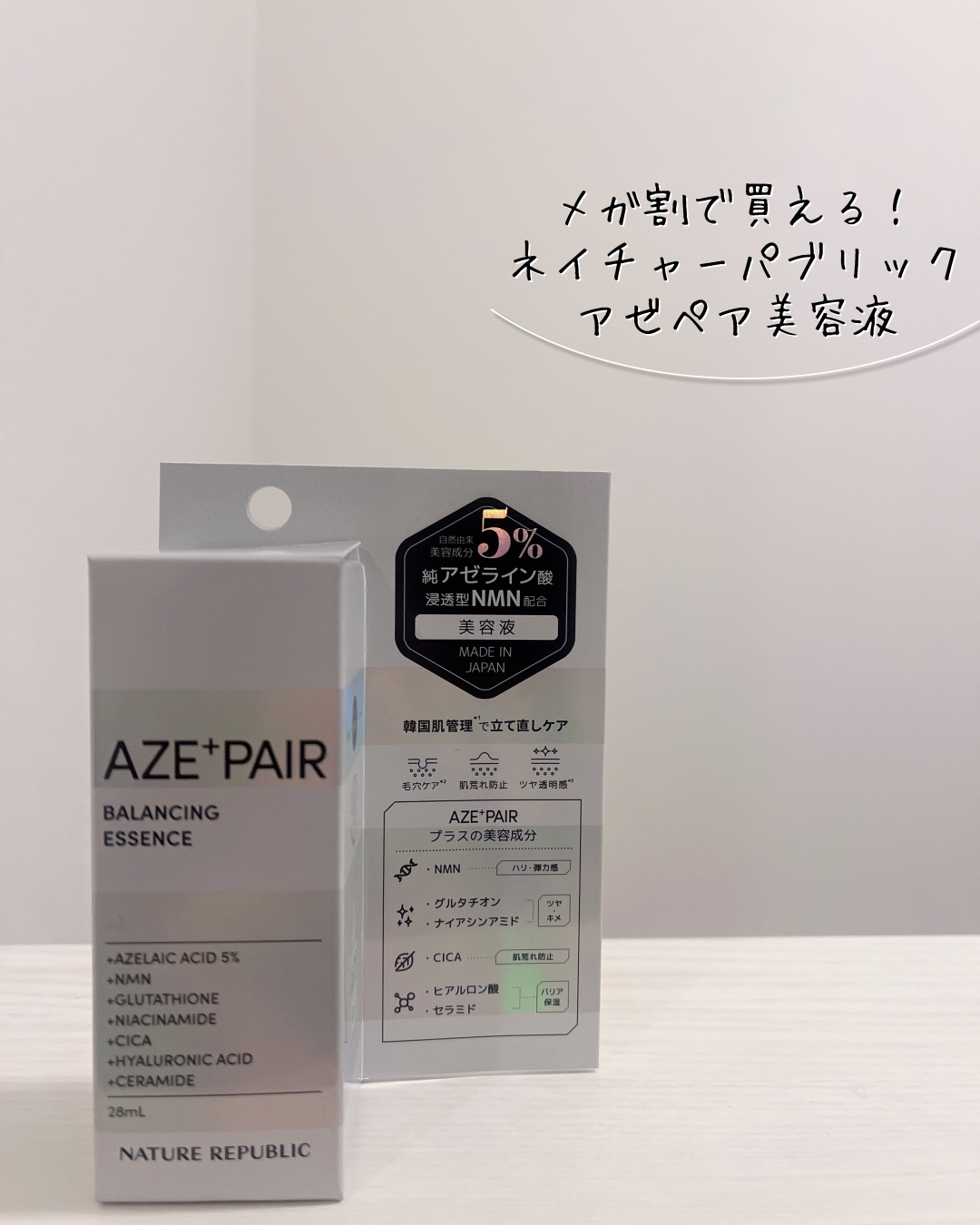 ネイチャーリパブリック初のMADE IN JAPAN開発🥺✨ アゼペア美容液をレビューです(๑•̀ㅂ•́)و✧ 毛穴・凸凹悩み・皮脂トラブル・肌荒れ防止・透明感など気になっている方におすすめのシリーズ🥺✨ アゼライン酸(保湿成分)が高濃度(5%)配合されているそう!!