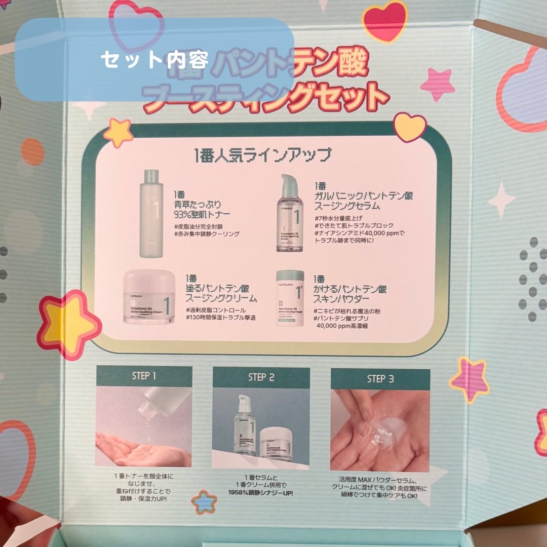 最大58%オフのかなりオトクなセットです 肌トラブル鎮静といえば1番 ☘️1番 パントテン酸ブースティングセットをご紹介します ニキビも予防できて、早く治るので、持っておきたいラインです🥹
