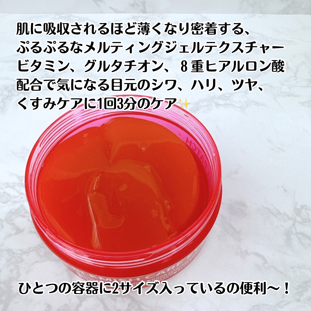 | 目元ケアランキング第53位 | ぷるんとしたジェリーのようなゲル状のアイパッチはみずみずしくて、ふわりとローズのいい香り!🥀 | 詳細を見る | |