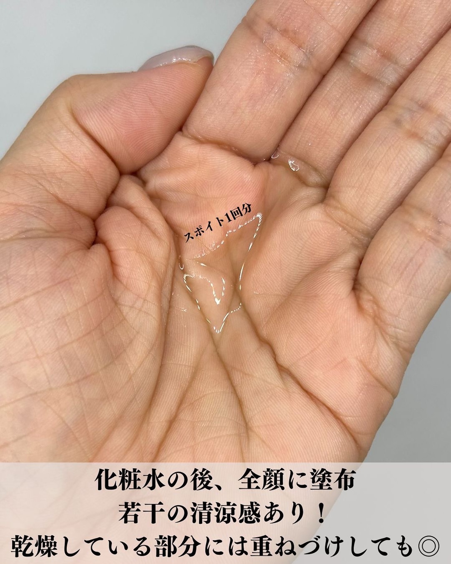 | とろみのあるテクスチャーだけど、肌にのばすとさらっとしていてみずみずしい使用感だよ☺️ | 詳細を見る | ||