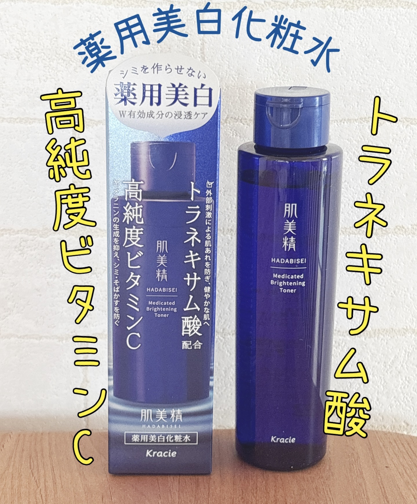 肌美精薬用美白化粧水は、美白有効成分「高純度ビタミンC」&消炎成分「トラネキサム酸」配合で、シミができるプロセスに効果的にアプローチし、透明感のある肌へ導くという化粧水です! クラシエ独自の「浸透アクアブースト処方」で素早く浸透し、「浸透促進成分CHD」配合で、有効成分や美容成分を角質の最深層まで届けてくれるとのこと✨ サラッとしたテクスチャーでつけた感触は軽めですが、しっとりとした使い心地です。ベタついたりせず、次のスキンケアがしやすい🙆♀️