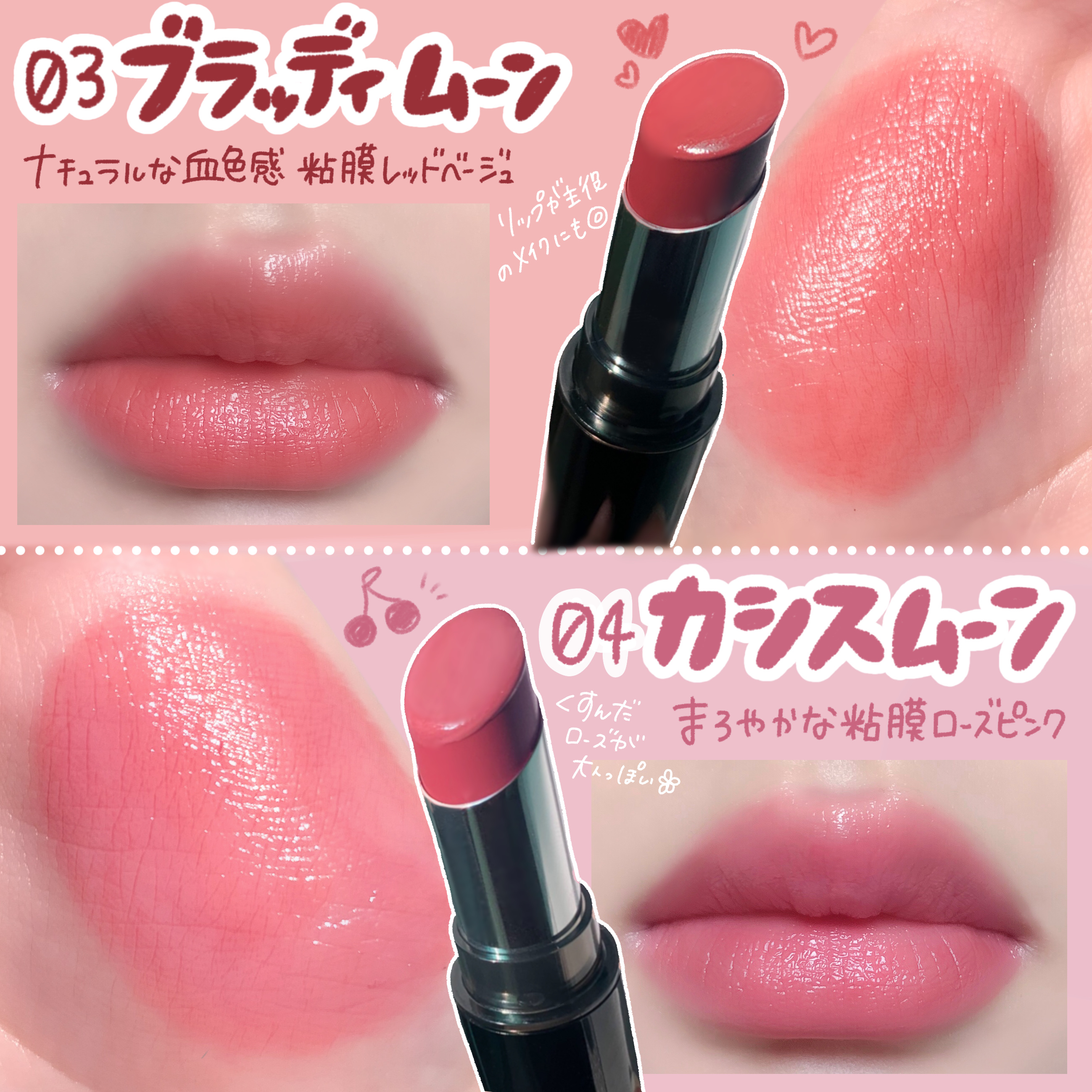 - <01 ラテムーン> ジフェニルジメチコン、ジフェニルシロキシフェニルトリメチコン、トリエチルヘキサノイン、リンゴ酸ジイソステアリル、PEG-12ジメチコン、合成ワックス、トリイソステアリン酸ポリグリセリル-2、ペンタイソステアリン酸ジペンタエリスリチル、トリ(カプリル酸/カプリン酸)グリセリル、ラウロイルグルタミン酸ジ(フィトステリル/オクチルドデシル)、エンテロコッカスフェカリス、セラミドNP、カニナバラ果実油、メドウフォーム油、ヒアルロン酸Na、マイクロクリスタリンワックス、トコフェロール、シリカ、BHT、酸化チタン、酸化鉄、トリエトキシカプリリルシラン、水酸化Al、黄4、赤201、赤202、赤223 <02 ブルーミングムーン> ジフェニルジメチコン、ジフェニルシロキシフェニルトリメチコン、トリエチルヘキサノイン、リンゴ酸ジイソステアリル、PEG-12ジメチコン、合成ワックス、トリイソステアリン酸ポリグリセリル-2、ペンタイソステアリン酸ジペンタエリスリチル、トリ(カプリル酸/カプリン酸)グリセリル、ラウロイルグルタミン酸ジ(フィトステリル/オクチルドデシル)、エンテロコッカスフェカリス、セラミドNP、カニナバラ果実油、メドウフォーム油、ヒアルロン酸Na、マイクロクリスタリンワックス、トコフェロール、シリカ、BHT、酸化チタン、酸化鉄、水酸化Al、トリエトキシカプリリルシラン、黄4、赤202、赤223 <03 ブラッディムーン> ジフェニルジメチコン、ジフェニルシロキシフェニルトリメチコン、トリエチルヘキサノイン、リンゴ酸ジイソステアリル、PEG-12ジメチコン、合成ワックス、トリイソステアリン酸ポリグリセリル-2、ペンタイソステアリン酸ジペンタエリスリチル、トリ(カプリル酸/カプリン酸)グリセリル、ラウロイルグルタミン酸ジ(フィトステリル/オクチルドデシル)、エンテロコッカスフェカリス、セラミドNP、カニナバラ果実油、メドウフォーム油、ヒアルロン酸Na、マイクロクリスタリンワックス、トコフェロール、シリカ、BHT、酸化鉄、酸化チタン、トリエトキシカプリリルシラン、水酸化Al、赤202、黄4、赤223 <04 カシスムーン> ジフェニルジメチコン、ジフェニルシロキシフェニルトリメチコン、トリエチルヘキサノイン、リンゴ酸ジイソステアリル、PEG-12ジメチコン、合成ワックス、トリイソステアリン酸ポリグリセリル-2、ペンタイソステアリン酸ジペンタエリスリチル、トリ(カプリル酸/カプリン酸)グリセリル、ラウロイルグルタミン酸ジ(フィトステリル/オクチルドデシル)、エンテロコッカスフェカリス、セラミドNP、カニナバラ果実油、メドウフォーム油、ヒアルロン酸Na、マイクロクリスタリンワックス、トコフェロール、シリカ、BHT、酸化鉄、酸化チタン、水酸化Al、トリエトキシカプリリルシラン、赤201、黄4、赤202、赤218、赤223