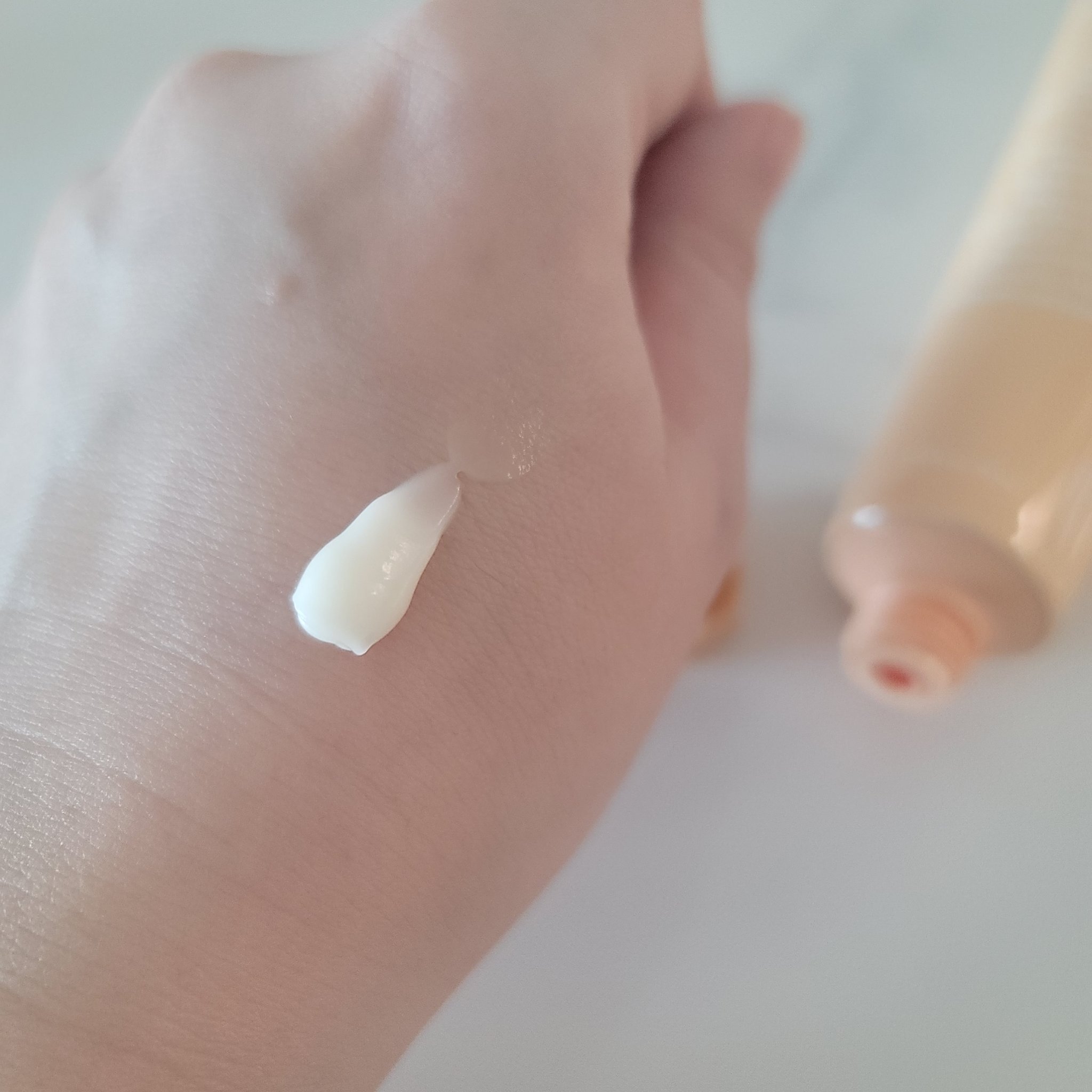 トーンアップ効果と角質ケア! 5重ヒアルロン酸で密着保湿! グルタチオンを詰め込んだカプセルが弾けて有効成分を肌に効果的に吸収 このチューブの形が取り出しやすいし使いやすくてお気に入りです✨