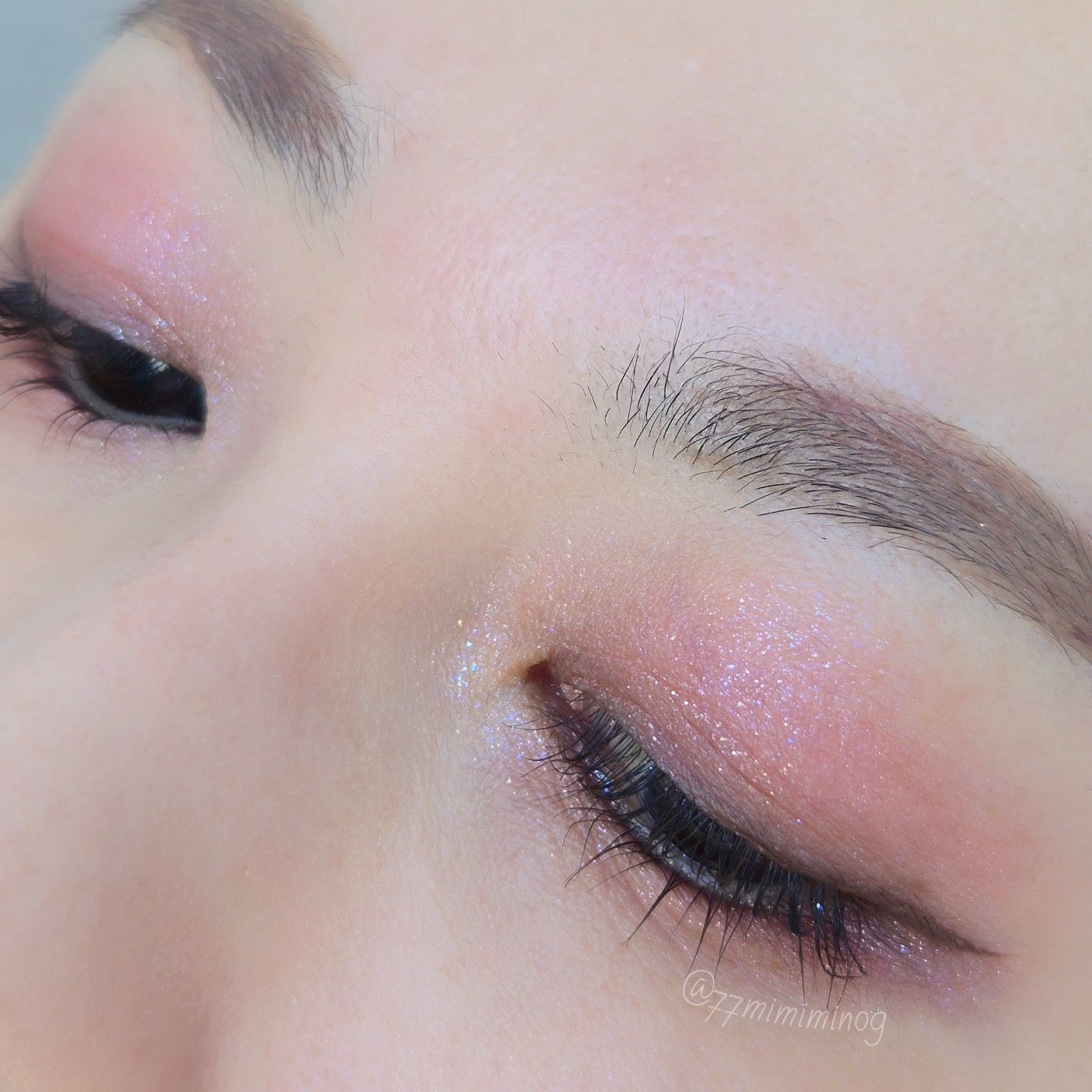 RMKのアイシャドウはこれがデビュー。こんなんブルベホイホイじゃん…。かわいすぎて即予約電話したわ🫠🩷 青みピンクに透明感爆発パープルにキラキララメ。締め色はグレージュっぽいブラウン。ブルベ大歓喜。 発色は調整しやすい。ピンクも見た目はビビッドだけど、ふんわり色づくので、好みの濃さにできるよ。