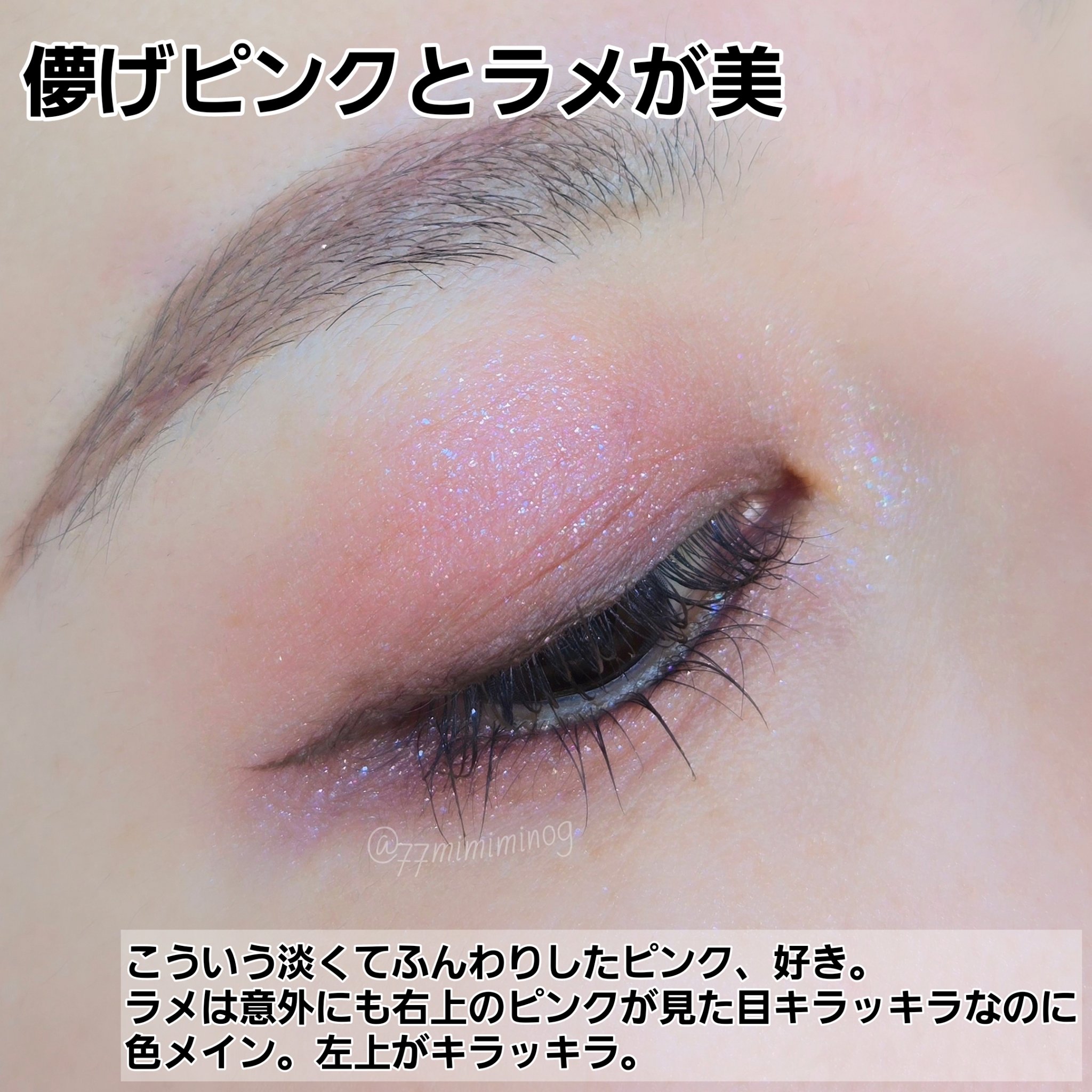 ベースに仕込むことで、パレットのカラーたちを引き立ててくれて発色がきれいに出る…!感動♡ 私の瞼ではピンクみが強めに出るんだけど、そのおかげでコートカラーのラメと締め色が映えて美しい🥹🩷 これ、136のパレットにも仕込んでみたい!!