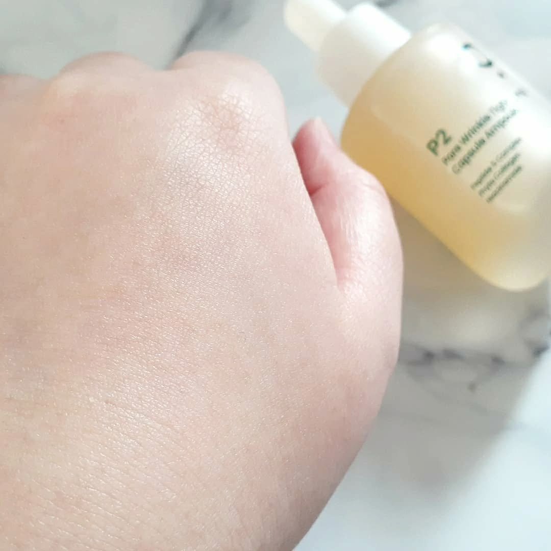 毛穴縮小特許成分「Anti Sebum P」配合。コロンとした手にすっぽりおさまるサイズ感が可愛い、スポイトタイプのアンプルです。 とろんとした濃厚なテクスチャーで、白いつぶつぶのカプセルがたくさん…!👀 このカプセルは「ペプチド5コンプレックス」×「フィトコラーゲン」が主成分。 無香料で成分やカプセルによる刺激もなく、テクスチャー的にも年齢や性別、季節問わず使いやすいアンプルだと思う…!!