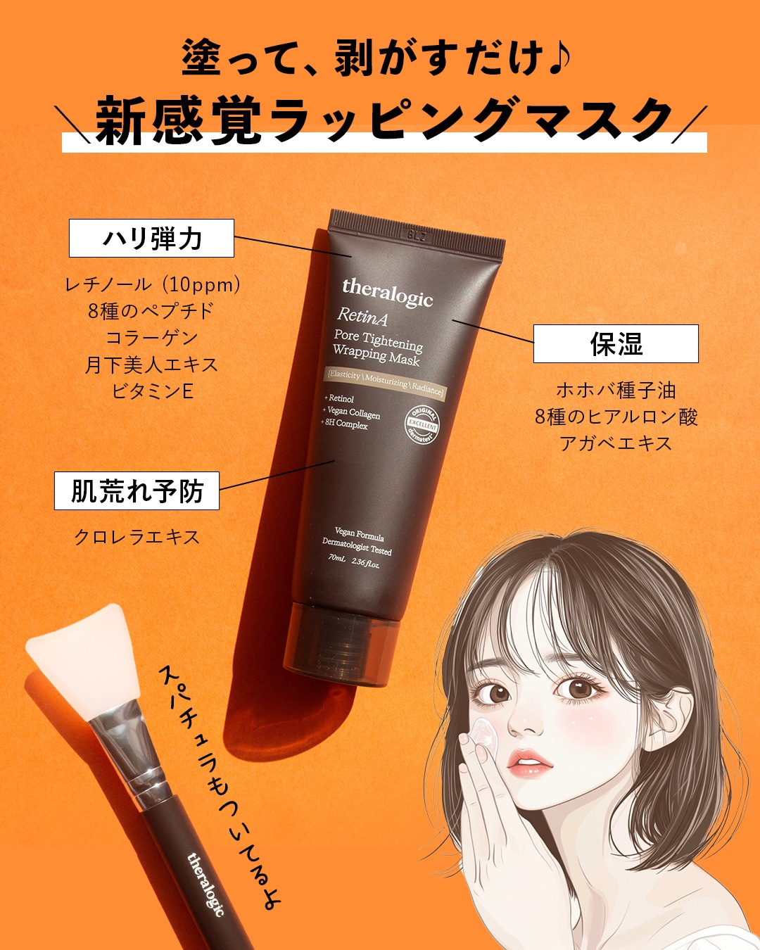 韓国トップの皮膚医院が開発したドクターズコスメ🤎✨ theralogicは、韓国の皮膚科専門医が共同開発を行なっている、スローエイジングに特化したヴィーガンダーマコスメティックブランド🤎✨ 韓国オリヤン1位(2023年11月)を獲得した低刺激レチノールクリーム✨ 夜使って翌朝の肌が調子のいいこと…!😳 毛穴や弾力ケアには欠かせないレチノールと、発酵コラーゲンが配合されているラッピングマスクです💓 1回使っただけでも朝の毛穴がキュッとなった気がしました😳🤎