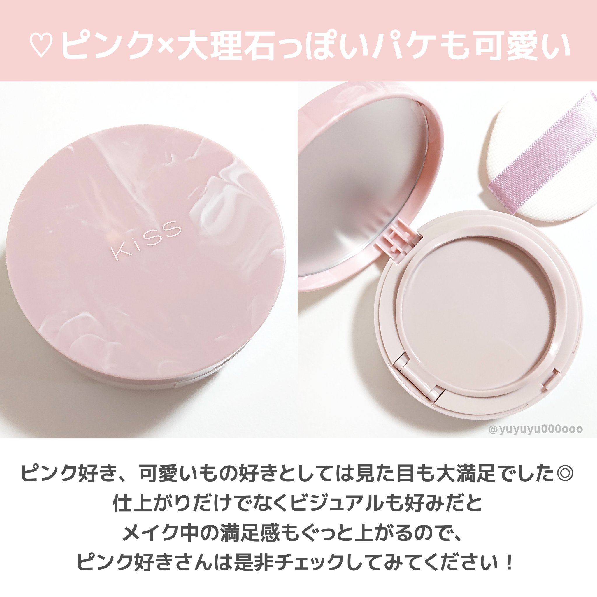 KISSクッションパンチ02ライトオークル♡トントンたたくほど均一にのびてハイカバーなのに薄膜つや仕上がりになるクッションファンデ♡美容液成分配合なのでしっとり感も続いてくれて崩れも本当に気になりにくかったです♡おしゃれなパッケージの大理石柄...