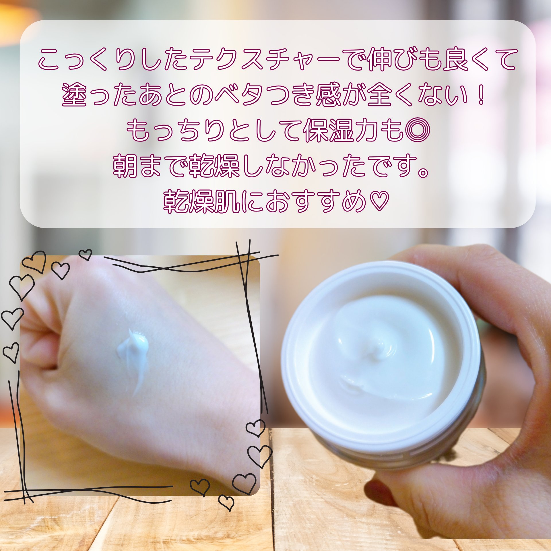 入手困難なこちらのクリーム 探しまくってやっと見つけました!10件ほど探し回りました。 こっくりしたテクスチャーで伸びも良くて 塗ったあとのベタつき感が全くない!もっちりとして保湿力も◎ 朝まで乾燥しなかったです。 乾燥肌におすすめ♡香りも良くて使用しやすい!