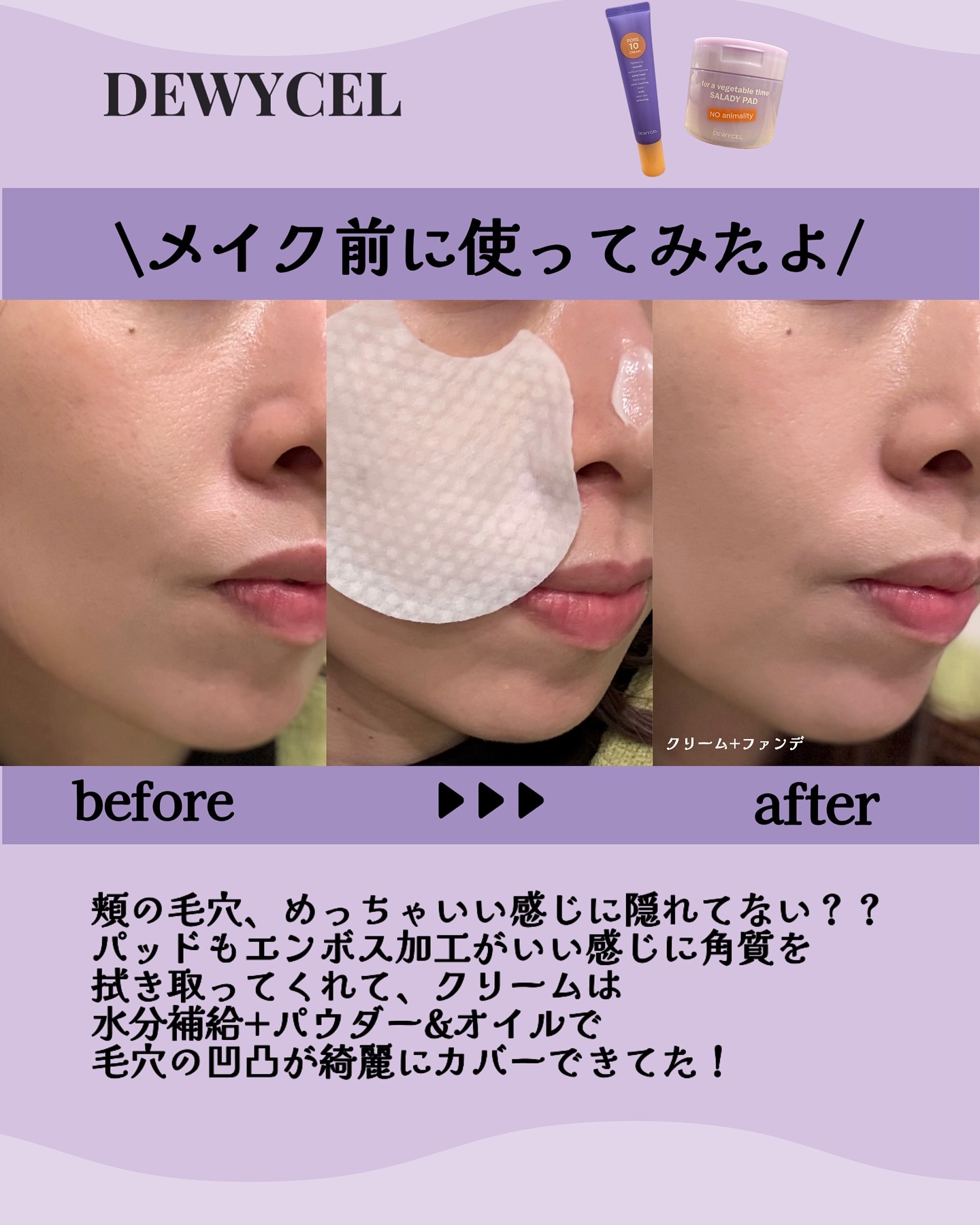 DEWYCEL▷サラディパッド ポアテンクリーム混合肌さんや脂性肌さんにおすすめのデューイセルの毛穴ケアセット🌿サラディパッドはふき取りとしても部分パックとしても使える二刀流✨朝洗顔の代わりとしても使えるよ🙆♀️💕さっぱりとした使い心地がお...