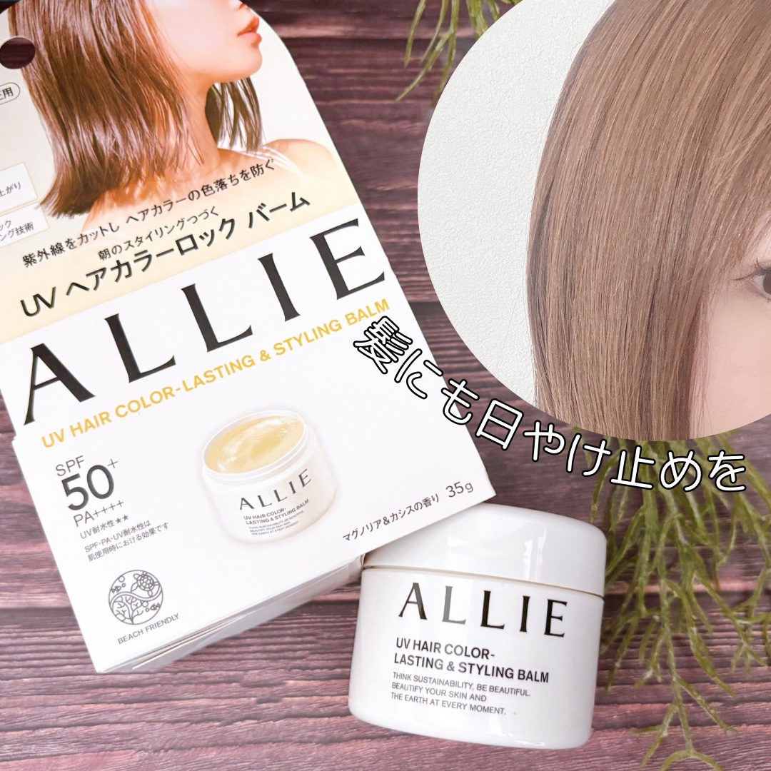 毎朝、ヘアオイル→ヘアクリーム→UVカットスプレーを使用しているので、これ1つで完結するなら嬉しい🥰 ツヤ感のある仕上がりが長時間つづき、パサつきを抑えてくれて、紫外線ダメージによるヘアカラーの色落ちも防いでくれるなら使うしかないですよね❣️ アリィー UVヘアカラーラスティング&スタイリング バーム(正式名称)💛 SPF50+ PA++++