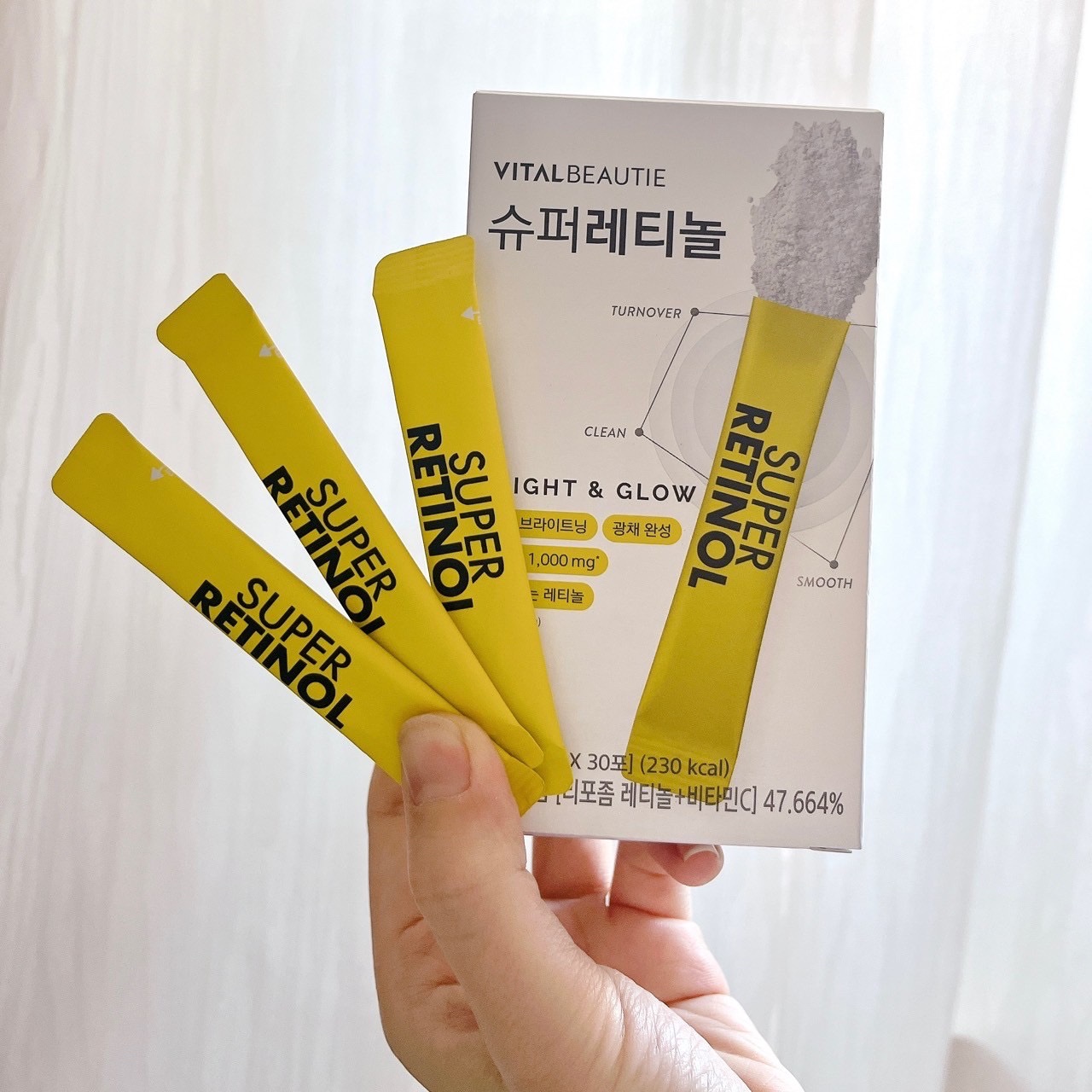 - 食べるタイプのレチノール 1) 専門家のフォーミュラ Flex! - 皮膚科専門医とアモーレパシフィックが共同開発 29年間蓄積したレチノール技術で完成! 食べるレチノールプロテクション技術を適用 (ビタミンA、1000ugRAE配合*) 2) 明るく輝く! - 豊富に含むビタミンC1,000mg含有* - パントテン酸1日栄養成分基準配合* - ビタミンE、ビタミンD、亜鉛 副成分 L-システインとヘスペリジンを配合 3) さわやかなシトラスの味 「ヴィーガンレチノール」 - ヴィーガン認証を取得した毎日摂取できる美味しいレチノール *上記の栄養成分の数値は、2包摂を基準に作成された含量です *お召し上がり方! 1回1~2包を 直接摂取してください
