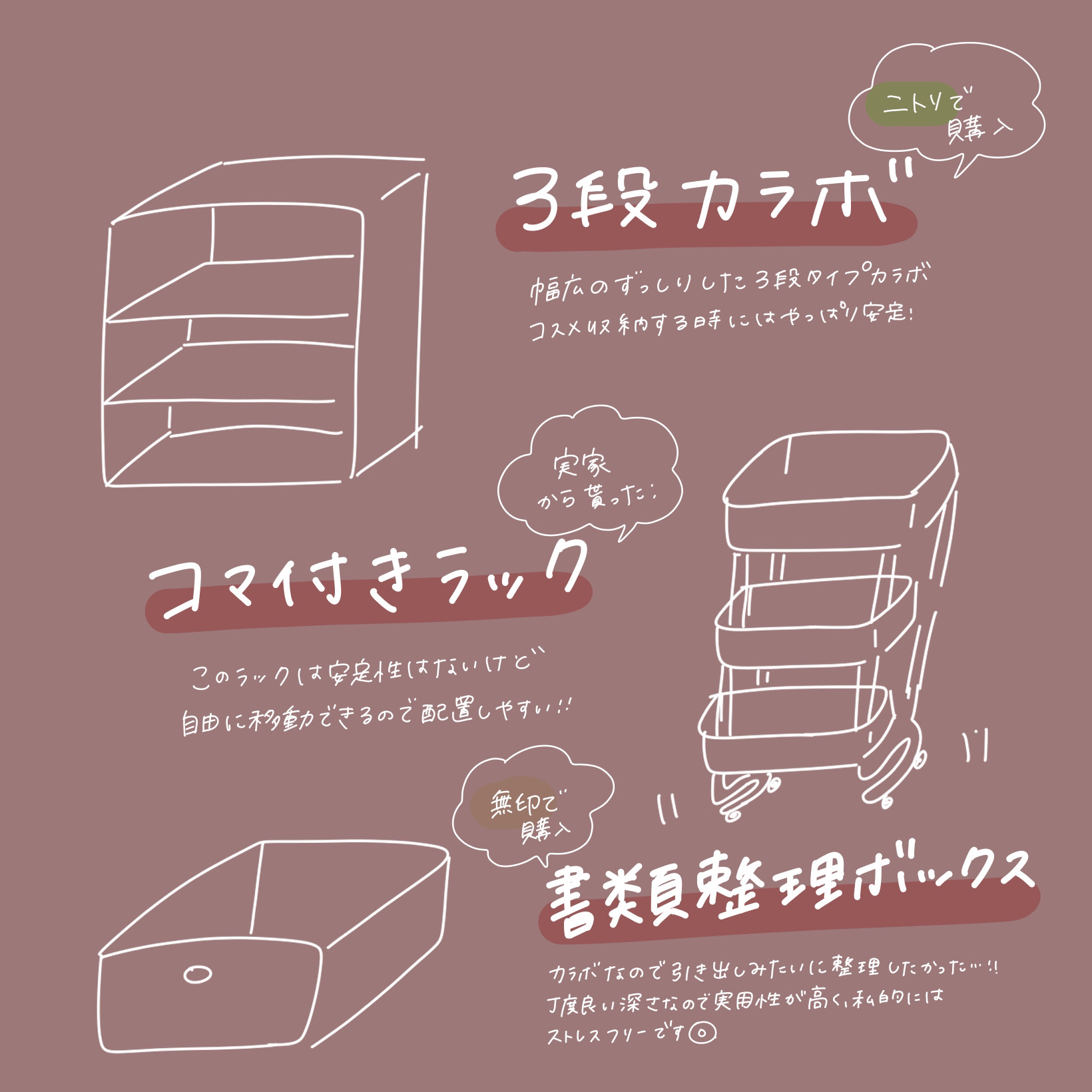 私は部屋は広いのに親のものと自分の本が多くてコスメ収納が難しいので参考になります...✨