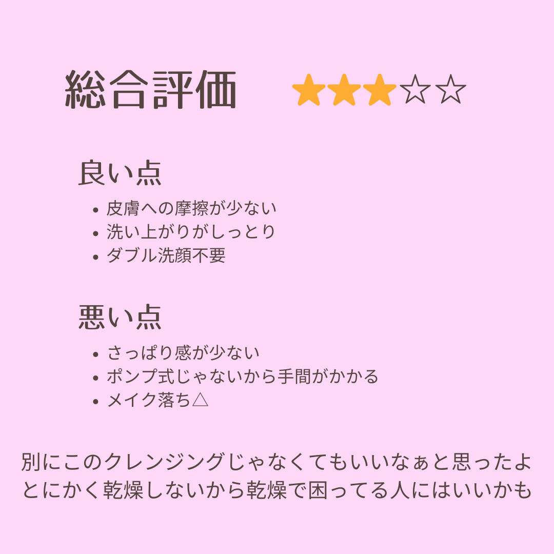 | クレンジングランキング第29位 | 洗い上がりはしっとり。ある程度の厚みがあるので摩擦は気になりにくいです。 | 詳細を見る | |