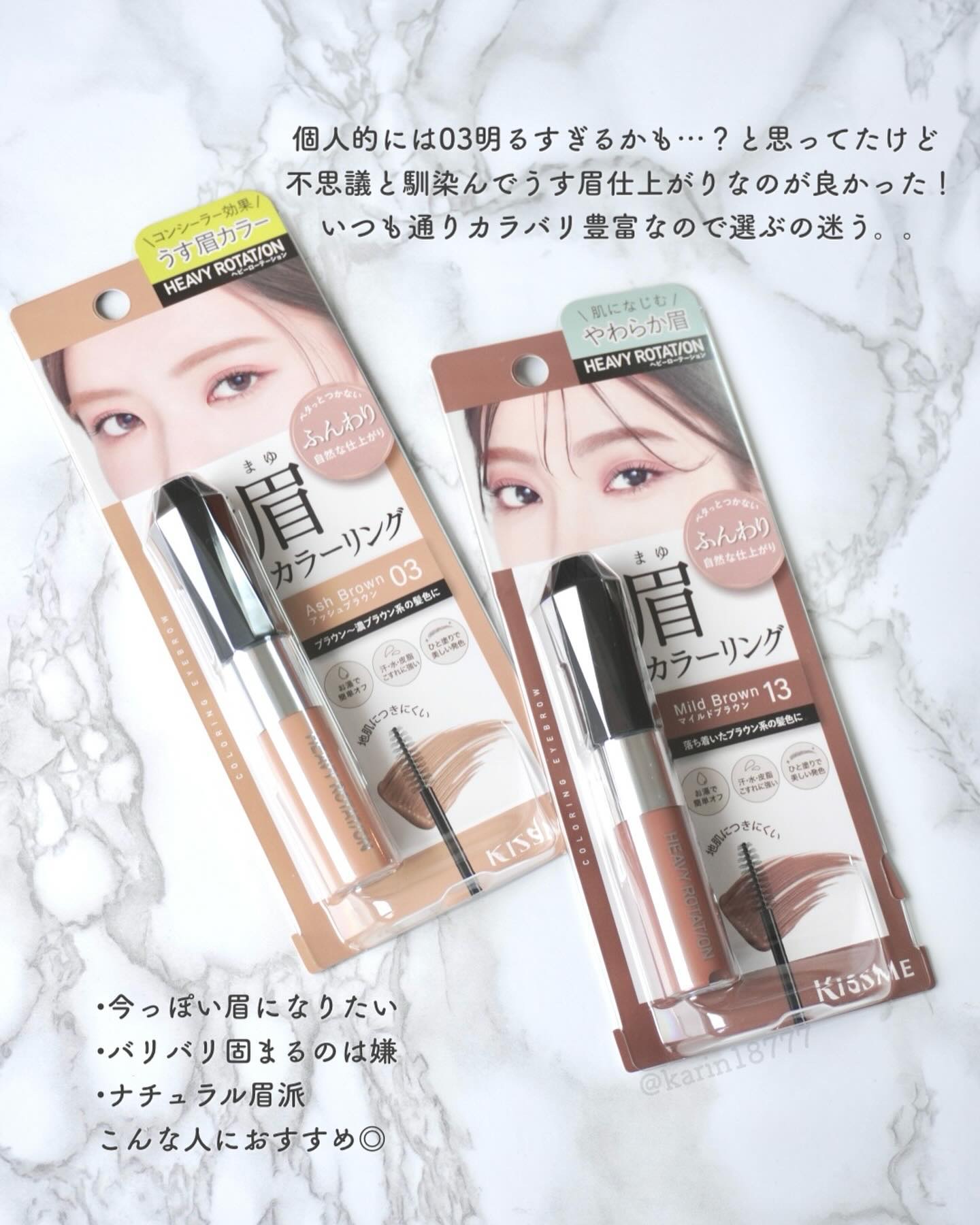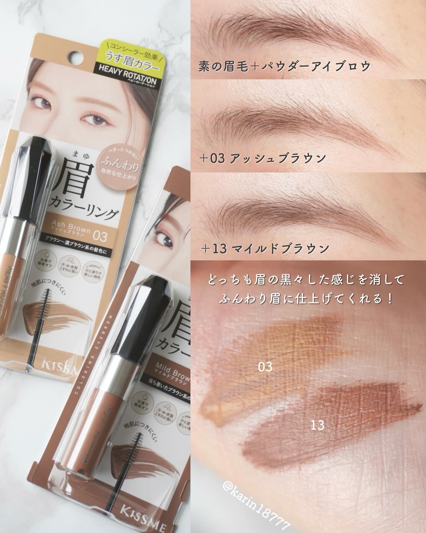 ︎🌟︎🌟︎🌟#giftedふんわり仕上がりの眉マスカラキスミーヘビーローテーションカラーリングアイブロウEX09ナチュラルアッシュ/ミニサンプル(アッシュ~暗髪に合うカラー)グレイッシュなブラウンカラー。手持ち2色とも比較してみました✨03ア...