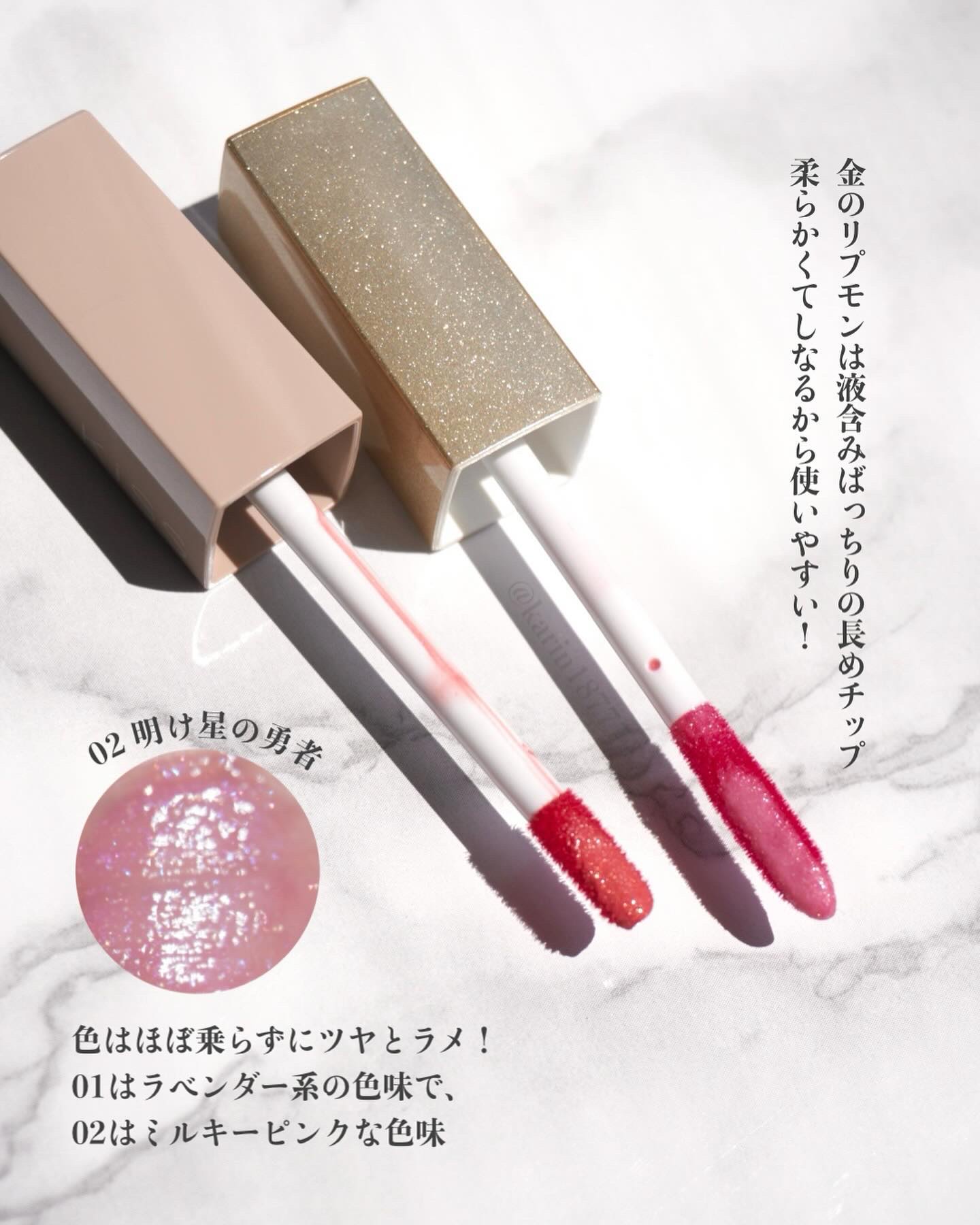 新色も限定色もプルッツヤラメが可愛すぎる🥹💓 10月1日に発売されたばかりのリップアーマー新色と限定色が美し可愛すぎたので語らせてください!!!! おひめスプリングにいちご紅茶、明け星の勇者...名前からもう既に可愛い🤦🏻♀️♡ 伝わりにくいかもだけど、実際は濡れたような光沢感があってもっともっと綺麗なの🥺 リップアーマーも金のリップアーマーも、うるおい成分のヒアルロン酸が配合されているのでおしゃれしながらケアできるのも嬉しいポイント♪