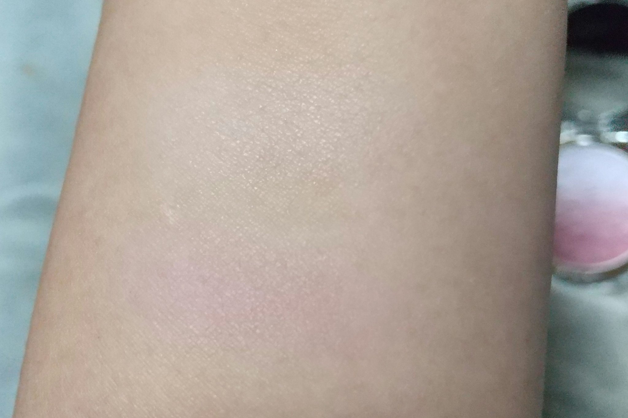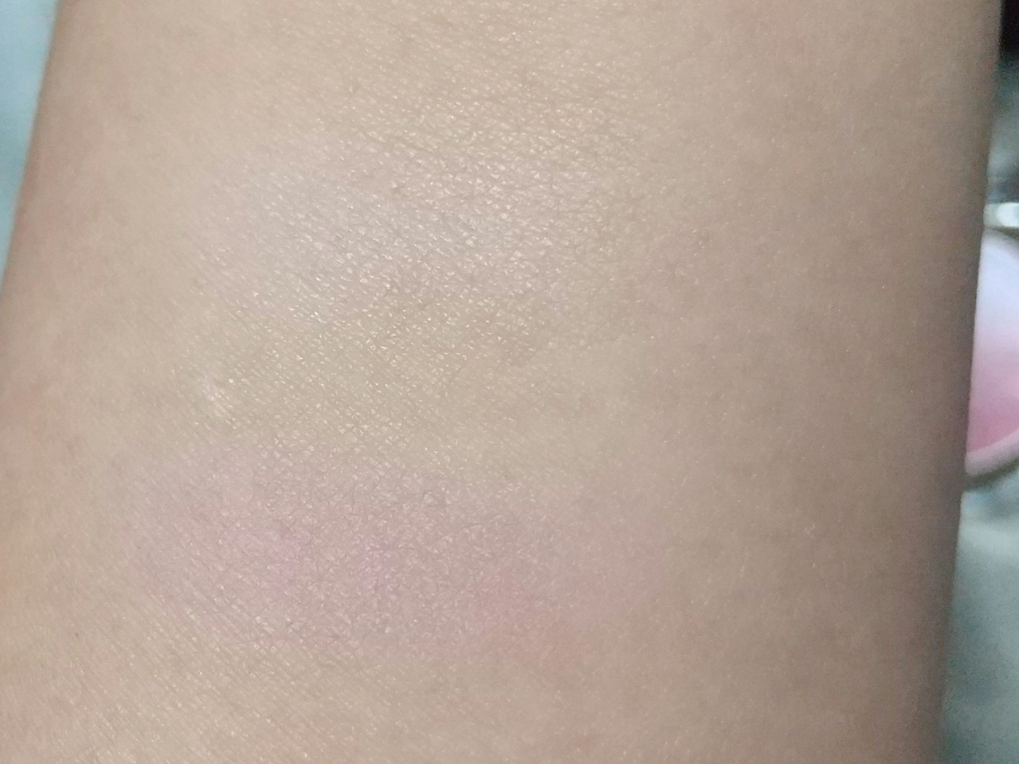 左上、左下、真ん中上、真ん中下、右上、右下という順番でスウォッチしてみました。 出してみると商品の写真より肌にのせたほうがくすみが出るかな✨という印象です😌 伸ばしやすくて指でも筆でもつけやすいです☺️💕 とっても可愛いカラーなのでオススメです💠
