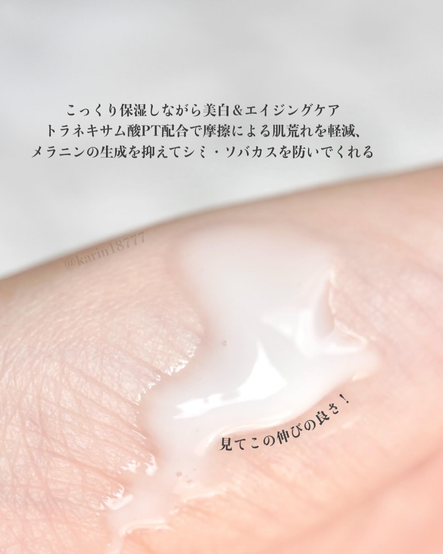 美白*・保湿・エイジングケア**3つの機能を叶える医薬部外品のボディミルク🍼 美白*有効成分「トラネキサム酸PT」配合なのが特徴🪄 クリーミーでなめらかなテクスチャー!伸びが良く、スル〜っと気持ちよく塗り広げられます◎