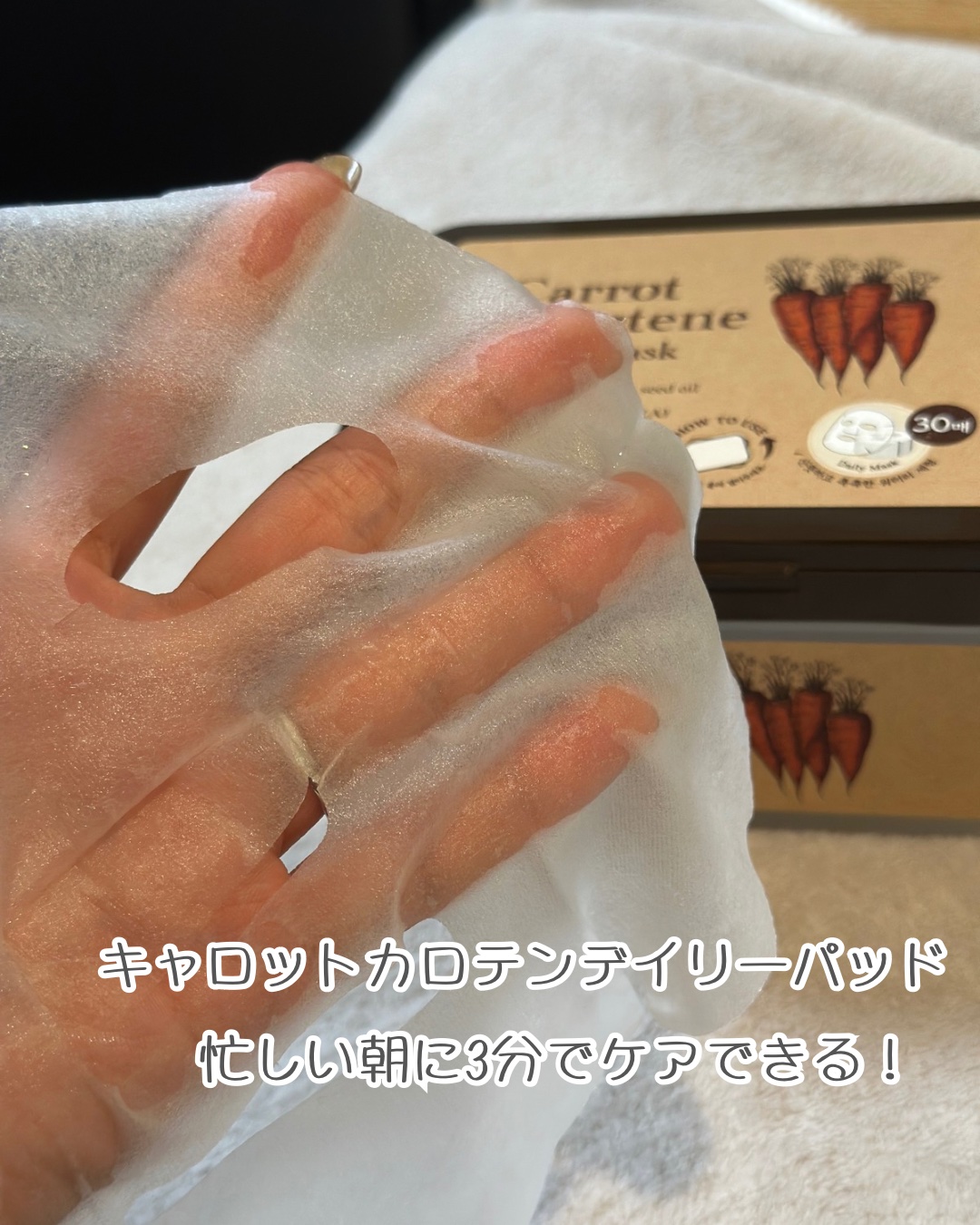 | ワッフルみたいな生地のパック🧇🥕にんじんの匂いはせず 美容液がこれでもか!!ってくらいひたひたです! | 詳細を見る | ||