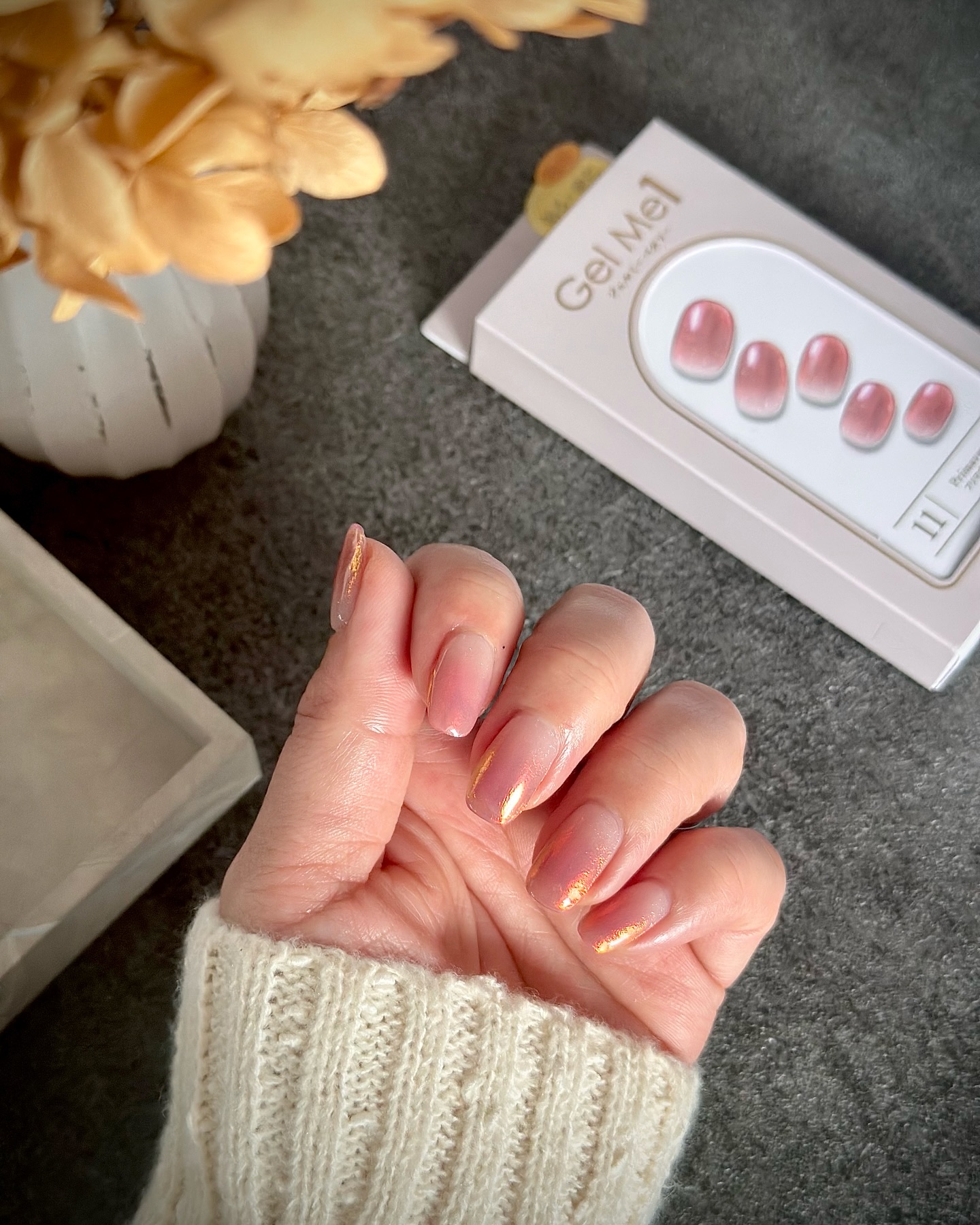 本格ジェルネイルがすぐに完成 ジェルミーペタりーから秋冬限定デザインが出ました🥀⋆* クラシカルなツイードとグレージュ×ホワイトカラーの洗練された大人デザイン 秋色カラーのツイードが大人可愛い! ラメ感もキラッキラです⋆*
