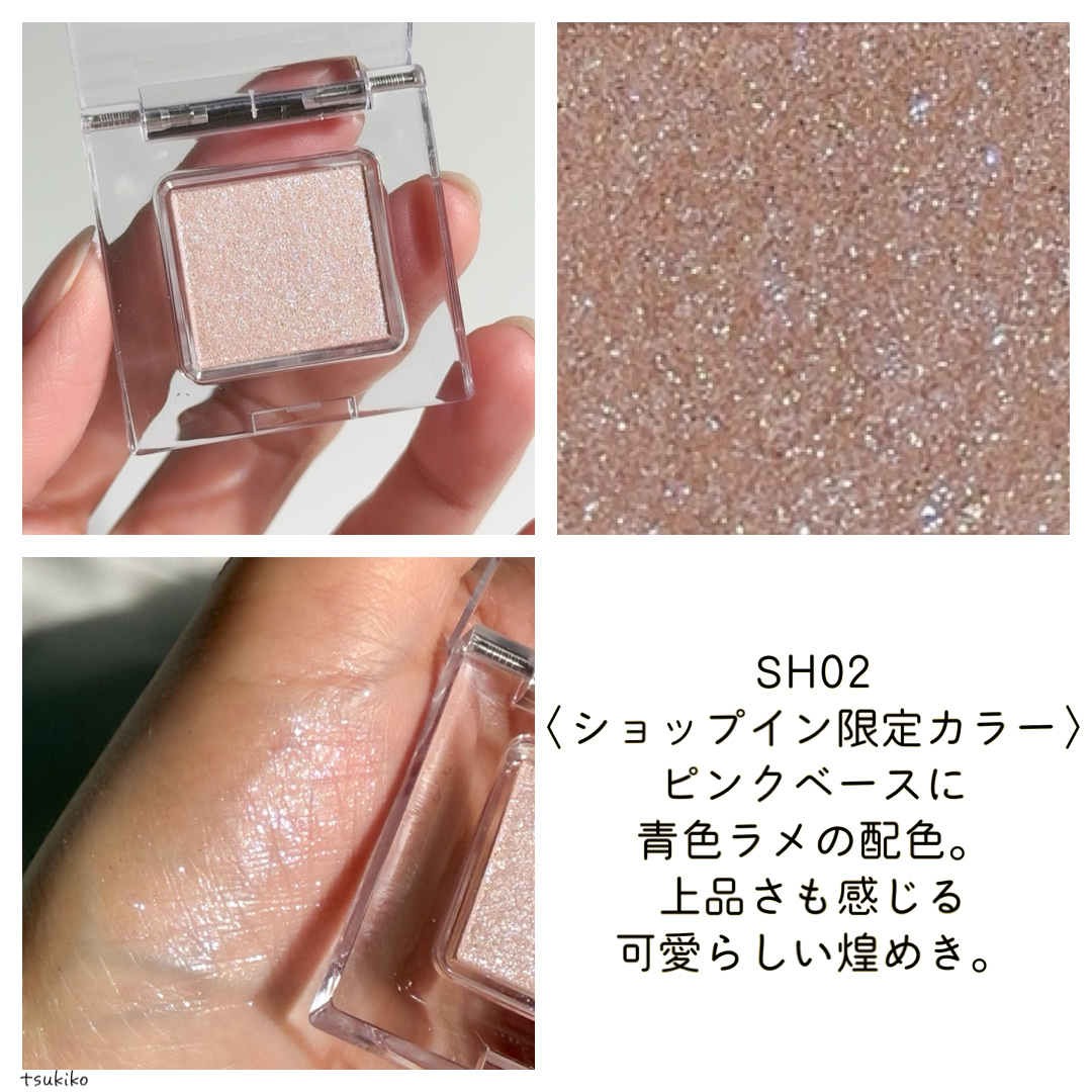 - 9つの質感に秘められた無限の可能性を持つカラーバリエーション。 【スパークル】大小のパールとラメが、光を集め解き放つスパークル。肌にフィットし、ゴージャスな煌めきを演出します。 単色使いはもちろんのこと、ハイライトやポイント使いなど、どこに輝きを追加するかは、あなた次第。 <SP06><SP07><SP08><SP09><SP10> キラキラなジェルクリームタイプ ラメが肌にしっかりフィットし煌めきと発色が長続きします。 おすすめの使い方:アイシャドウ、ハイライト <SP11> 輝度の高いラメをふんだんに使用したクリアに煌めくホワイトラメ <SP12> 輝きだけではなく目元の透明感まで引き出してくれるパープルラメ