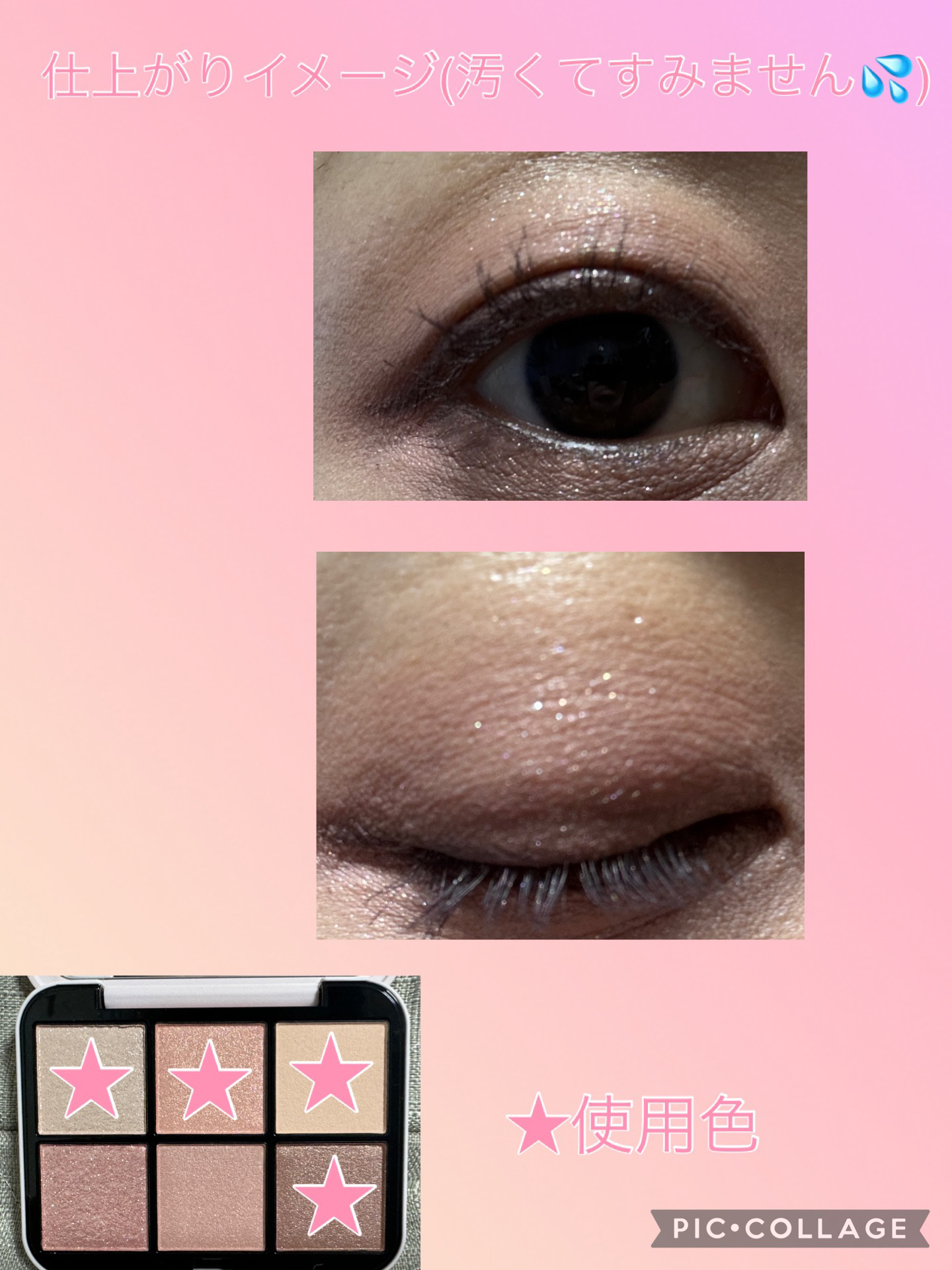 このパレットはマット、パール、ラメの3パターンの涙袋が作れます‼️ 真ん中の下には血色影カラーパウダーといって影寄りの色だけど血色感もあって目元が暗くならない魔法のようなカラーだそうです✨ アプリコットプランぷくはナチュラルな印象になるコーラルカラー サクラプランぷくはかわいい印象になるピンクカラー 私は血色影カラーパウダーをブラシで作ってからマットとパールを重ねてから黒目のところにラメをのせて使ってます😀 使い方も簡単なのとコロンとした見た目と小さめなのでポーチに入れてもかさばらず持ち運びにも向いてます✨