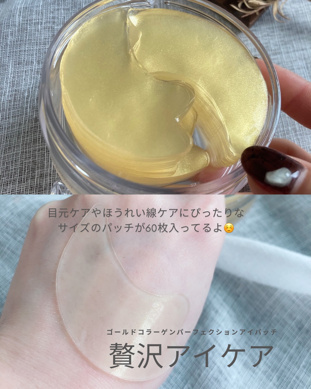 125Daの超低分子コラーゲンと24Kゴールドで贅沢アイケア𓂃💛𓈒𓏲 ゼリーを固めたようなプルップルのハイドロゲルパッチ。ぴた〜っと密着してひんやり気持ち良い😍 ちゃんと浸透しているのが目に見えて嬉しい◎ 目元がぷりっと元気になる感じがして良かったです🍑✨