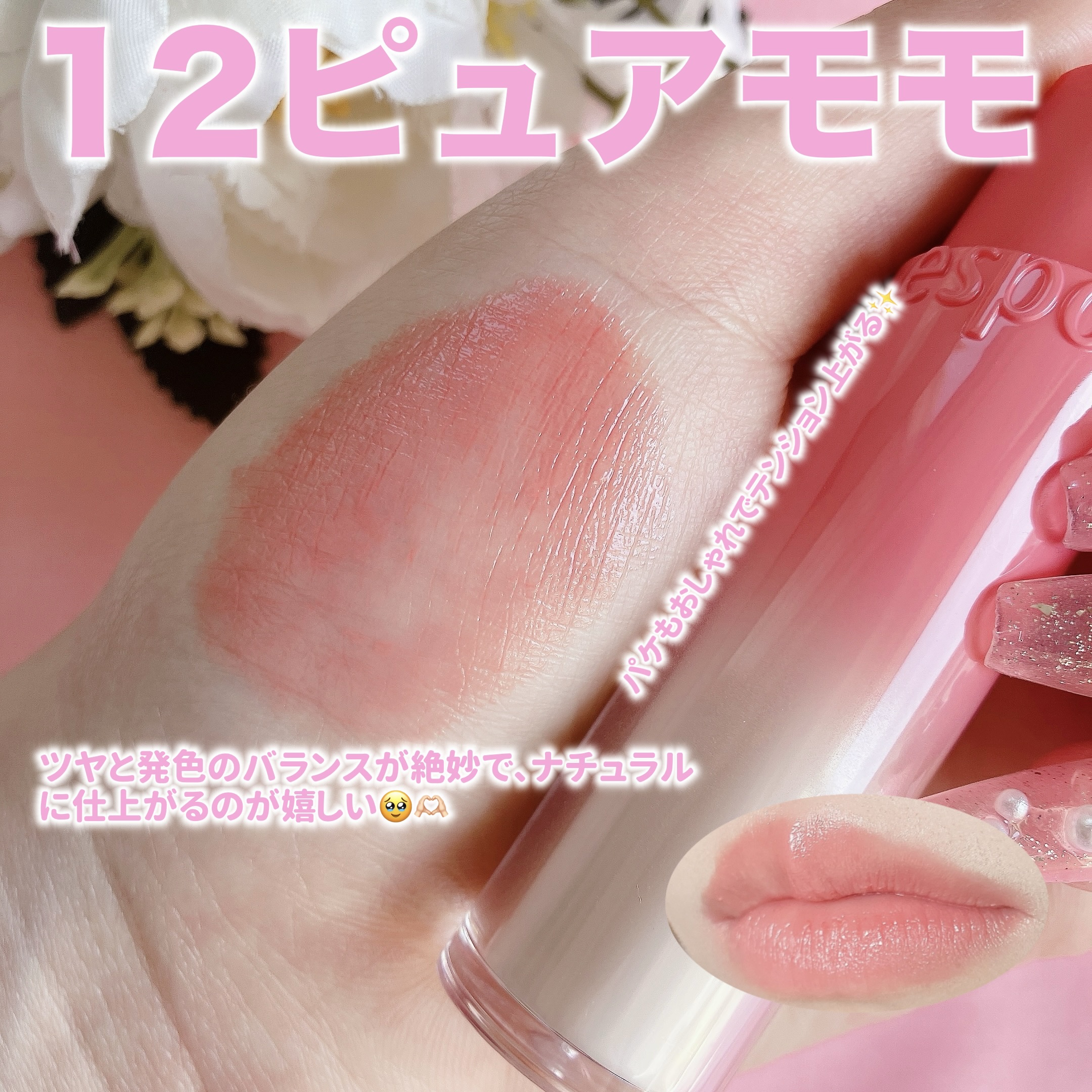 ちゅるんとした自然なヘルシーピーチカラーが本当にかわいい♡🍑 発色、潤い、ツヤ感、全てを兼ね揃えていてこれぞまさにネンマクリップ…😳💕 ジェル膜テクノロジー搭載で、ベタベタしない付け心地も最高🥺