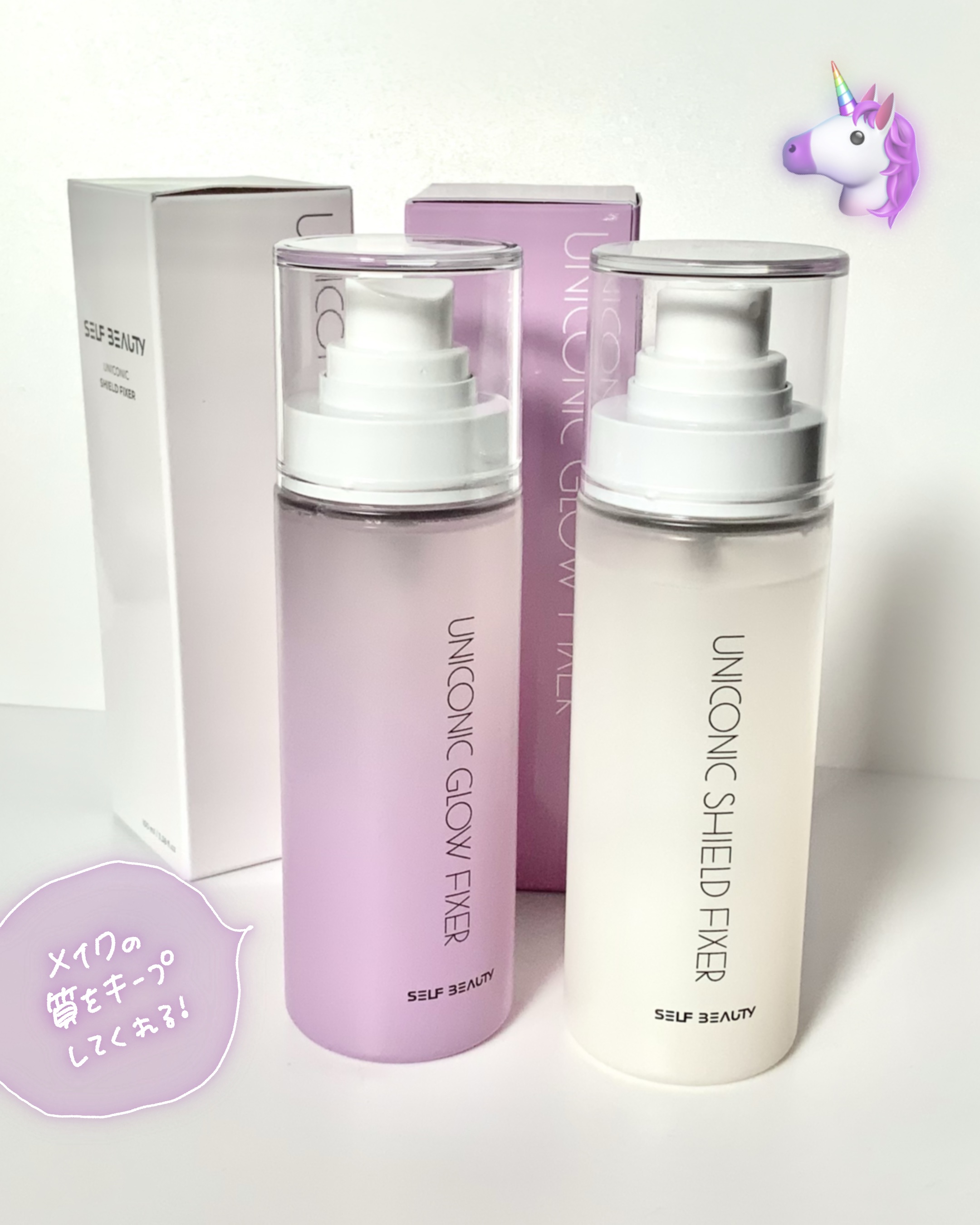 SELFBEAUTY「ユニコーンシールドフィックスミストマット」をお試しました😊以前からYouTubeなどでも拝見してて使ってみたかったので楽しみ〜🎶夏は特になんですが、わたしメイクフィックスミスト難民なんです( ̄▽ ̄;)お店には様々なフィッ...