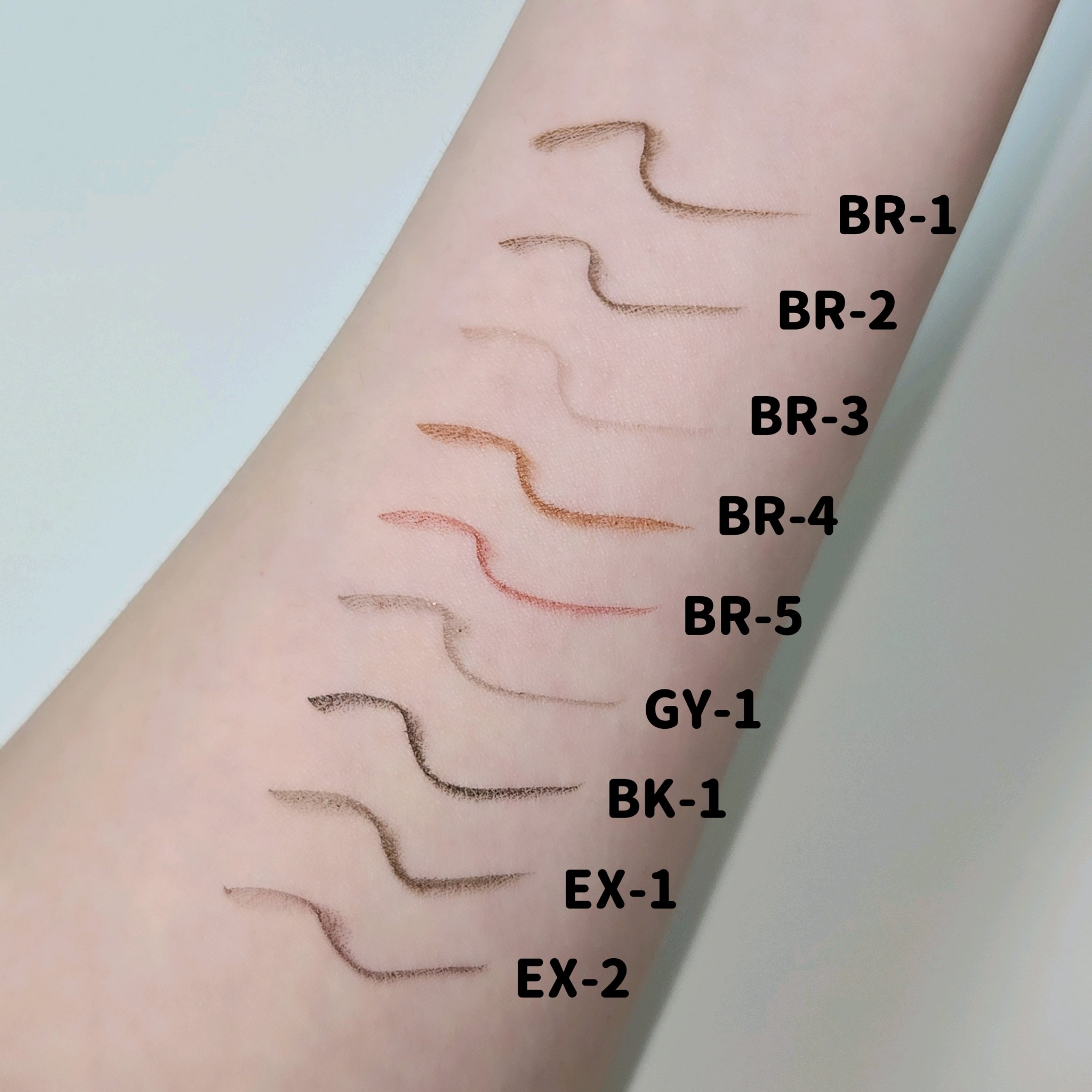 - <BK-1 漆黒ブラック> 水、BG、アクリレーツコポリマー、(アクリレーツ/アクリル酸エチルヘキシル)コポリマー、(スチレン/アクリレーツ)コポリマー、アクリレーツコポリマーアンモニウム、PEG-60水添ヒマシ油、DPG、ラウレス-21、AMP、(アクリレーツ/メタクリル酸ステアレス-20)コポリマー、EDTA-2Na、ポリグリセリル-3ジシロキサンジメチコン、クエン酸、ステアリン酸PEG-40、トリイソステアリン酸ポリグリセリル-2、ポリリシノレイン酸ポリグリセリル-6、セスキイソステアリン酸ソルビタン、フェノキシエタノール、メチルパラベン、エチルパラベン、(+/-)カーボンブラック、酸化鉄、赤226、(チタン/酸化チタン)焼結物 <BR-1 自然なブラウン> 水、BG、アクリレーツコポリマー、(アクリレーツ/アクリル酸エチルヘキシル)コポリマー、(スチレン/アクリレーツ)コポリマー、アクリレーツコポリマーアンモニウム、PEG-60水添ヒマシ油、DPG、ラウレス-21、AMP、(アクリレーツ/メタクリル酸ステアレス-20)コポリマー、EDTA-2Na、ポリグリセリル-3ジシロキサンジメチコン、クエン酸、ステアリン酸PEG-40、トリイソステアリン酸ポリグリセリル-2、ポリリシノレイン酸ポリグリセリル-6、セスキイソステアリン酸ソルビタン、フェノキシエタノール、メチルパラベン、エチルパラベン、(+/-)カーボンブラック、酸化鉄、赤226、(チタン/酸化チタン)焼結物 <BR-2 ビターブラウン> 水、BG、アクリレーツコポリマー、(アクリレーツ/アクリル酸エチルヘキシル)コポリマー、(スチレン/アクリレーツ)コポリマー、アクリレーツコポリマーアンモニウム、PEG-60水添ヒマシ油、DPG、ラウレス-21、AMP、(アクリレーツ/メタクリル酸ステアレス-20)コポリマー、EDTA-2Na、ポリグリセリル-3ジシロキサンジメチコン、クエン酸、ステアリン酸PEG-40、トリイソステアリン酸ポリグリセリル-2、ポリリシノレイン酸ポリグリセリル-6、セスキイソステアリン酸ソルビタン、フェノキシエタノール、メチルパラベン、エチルパラベン、(+/-)カーボンブラック、酸化鉄、赤226、(チタン/酸化チタン)焼結物 <BR-3 ウォームブラウン> 水、BG、アクリレーツコポリマー、(アクリレーツ/アクリル酸エチルヘキシル)コポリマー、(スチレン/アクリレーツ)コポリマー、アクリレーツコポリマーアンモニウム、PEG-60水添ヒマシ油、DPG、ラウレス-21、AMP、(アクリレーツ/メタクリル酸ステアレス-20)コポリマー、EDTA-2Na、ポリグリセリル-3ジシロキサンジメチコン、クエン酸、ステアリン酸PEG-40、トリイソステアリン酸ポリグリセリル-2、ポリリシノレイン酸ポリグリセリル-6、セスキイソステアリン酸ソルビタン、フェノキシエタノール、メチルパラベン、エチルパラベン、(+/-)カーボンブラック、酸化鉄、赤226、(チタン/酸化チタン)焼結物 <GY-1 ダークグレージュ> 水、BG、アクリレーツコポリマー、(アクリレーツ/アクリル酸エチルヘキシル)コポリマー、(スチレン/アクリレーツ)コポリマー、アクリレーツコポリマーアンモニウム、PEG-60水添ヒマシ油、DPG、ラウレス-21、AMP、(アクリレーツ/メタクリル酸ステアレス-20)コポリマー、EDTA-2Na、ポリグリセリル-3ジシロキサンジメチコン、クエン酸、ステアリン酸PEG-40、トリイソステアリン酸ポリグリセリル-2、ポリリシノレイン酸ポリグリセリル-6、セスキイソステアリン酸ソルビタン、フェノキシエタノール、メチルパラベン、エチルパラベン、(+/-)カーボンブラック、酸化鉄、赤226、(チタン/酸化チタン)焼結物 <BK-1 漆黒ブラック(レフィル)> 水、BG、アクリレーツコポリマー、(アクリレーツ/アクリル酸エチルヘキシル)コポリマー、(スチレン/アクリレーツ)コポリマー、アクリレーツコポリマーアンモニウム、PEG-60水添ヒマシ油、DPG、ラウレス-21、AMP、(アクリレーツ/メタクリル酸ステアレス-20)コポリマー、EDTA-2Na、ポリグリセリル-3ジシロキサンジメチコン、クエン酸、ステアリン酸PEG-40、トリイソステアリン酸ポリグリセリル-2、ポリリシノレイン酸ポリグリセリル-6、セスキイソステアリン酸ソルビタン、フェノキシエタノール、メチルパラベン、エチルパラベン、(+/-)カーボンブラック、酸化鉄、赤226、(チタン/酸化チタン)焼結物 <BR-1 自然なブラウン(レフィル)> 水、BG、アクリレーツコポリマー、(アクリレーツ/アクリル酸エチルヘキシル)コポリマー、(スチレン/アクリレーツ)コポリマー、アクリレーツコポリマーアンモニウム、PEG-60水添ヒマシ油、DPG、ラウレス-21、AMP、(アクリレーツ/メタクリル酸ステアレス-20)コポリマー、EDTA-2Na、ポリグリセリル-3ジシロキサンジメチコン、クエン酸、ステアリン酸PEG-40、トリイソステアリン酸ポリグリセリル-2、ポリリシノレイン酸ポリグリセリル-6、セスキイソステアリン酸ソルビタン、フェノキシエタノール、メチルパラベン、エチルパラベン、(+/-)カーボンブラック、酸化鉄、赤226、(チタン/酸化チタン)焼結物 <BR-2 ビターブラウン(レフィル)> 水、BG、アクリレーツコポリマー、(アクリレーツ/アクリル酸エチルヘキシル)コポ