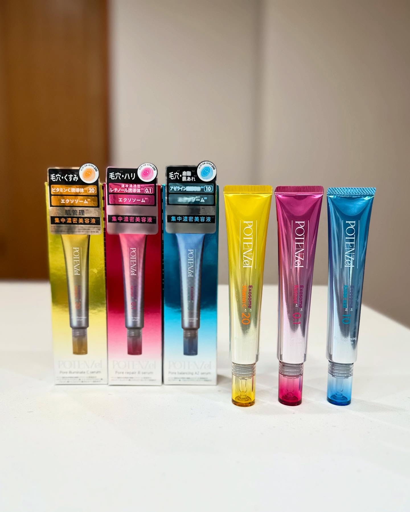 肌の悩みに合わせて選べる 3種類の美容液です 私は特に「たるみ毛穴」が気になるので赤の美容液を使いはじめました お試ししやすい価格帯なのが嬉しいです (各約1600円)