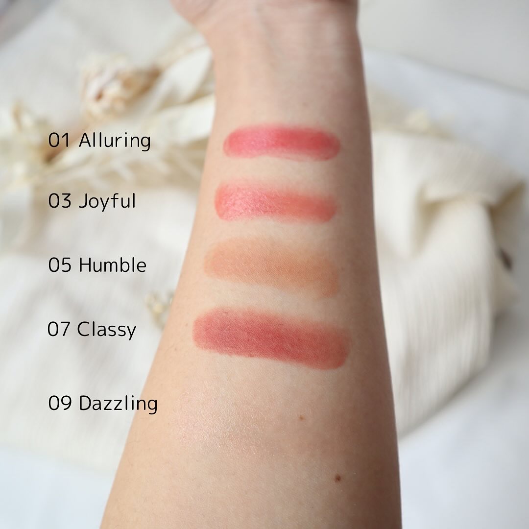 ソフトに溶け込むようになじむカラー。べたつきなくフィットしてくれるのが嬉しいです♡ コレ1つでメイク可能。使ったカラーはコレ!〈Sheer Glow〉01 アルーリング(パーソナルカラー問わず使えるデイリーニュートラルレッド) 質感が使いやすくカラーとテクスチャーが違うので色々組み合わせるのが楽しかったです♡ 発色がよくどの部分に使ってもかわいいー♡