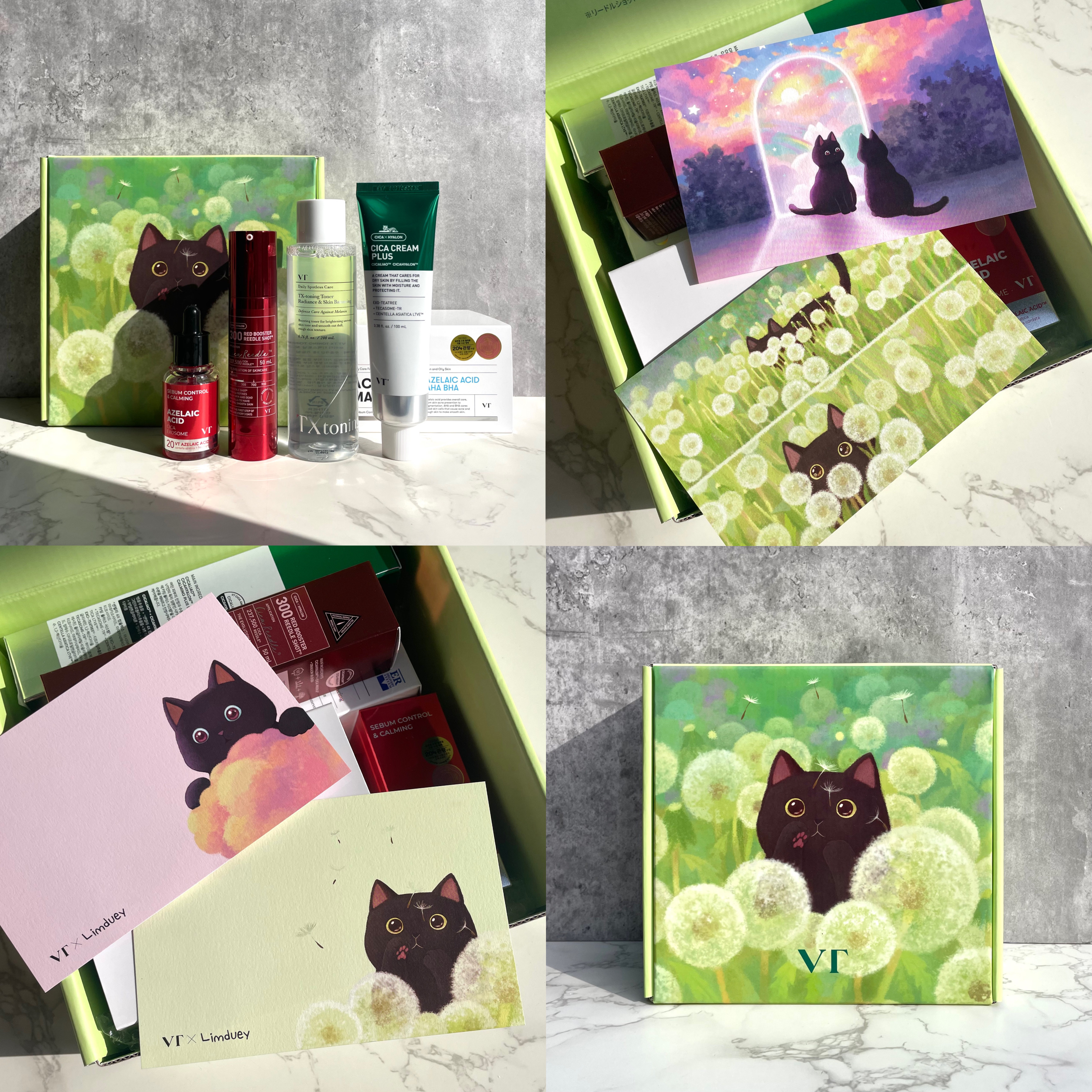 『VT肌悩みニャンでも解決セット』😻💕😻💕 可愛い黒猫ちゃんがお出迎え😺💞 ニキビが出現しがちな私がおすすめするのは…「アゼライン酸」のセット😻💓 贅沢にアゼライン酸のアンプル&年齢肌対策にも嬉しいレッドブースターリードルショット、デイリーマスク、CICAクリームのセットでお届け💓