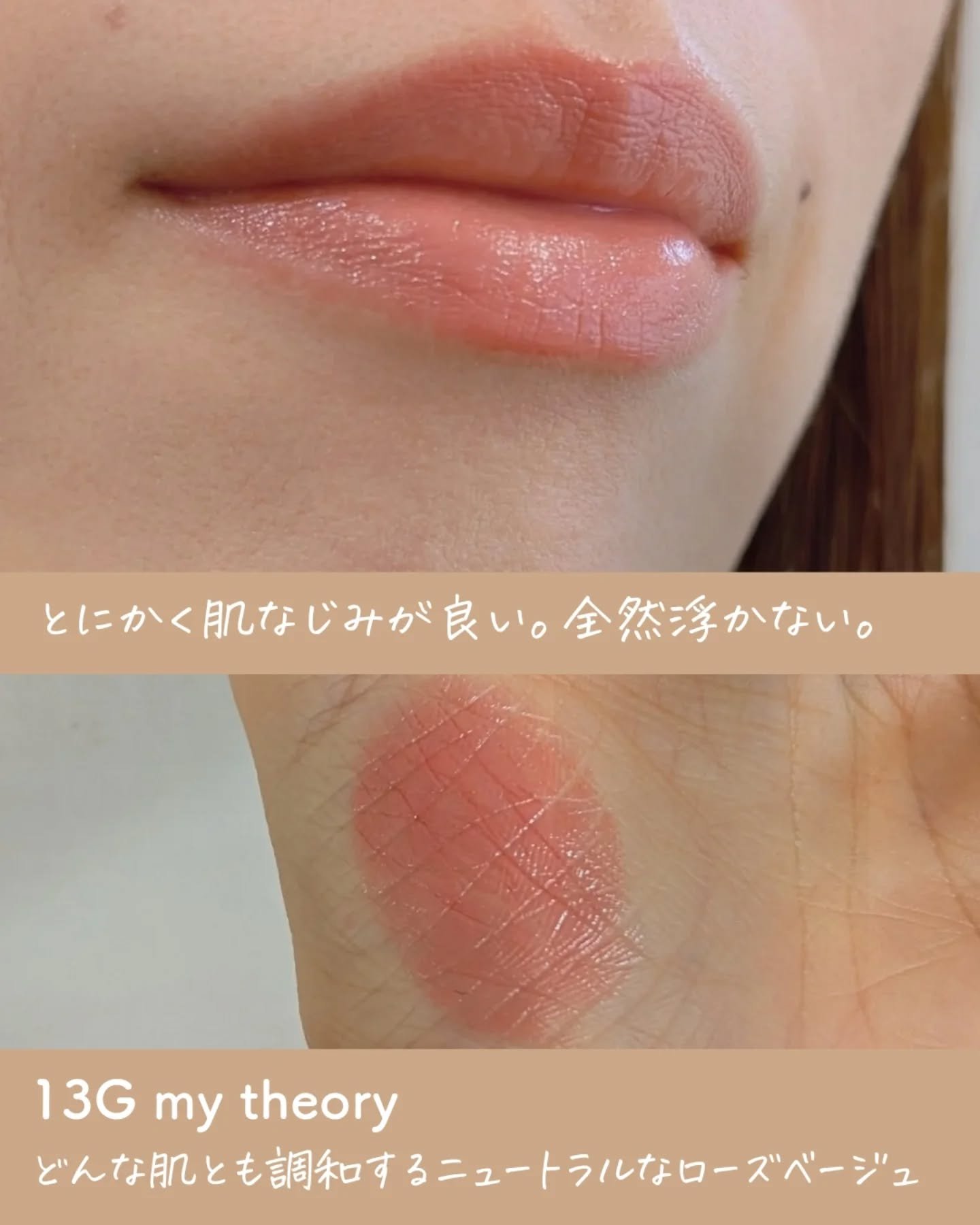 自然なツヤ感で上品な印象に仕上がります🤍 しかも縦ジワカバーできるし ボリュームでるし 保湿&エイジングケア成分もしっかり入っていて、まさに大人のためのルージュだなぁと思いました。 全25色展開なんだけど、イエベ春の私は悩みに悩んで13番に🌷 これは万人受けしそうな上品で好印象なカラーよ✨️ スキンケア効果から色設計、デザインにまでこだわった新ルージュ。 テクスチャーにもこだわってて、唇に塗布するだけでストレスケアまでできちゃうの。