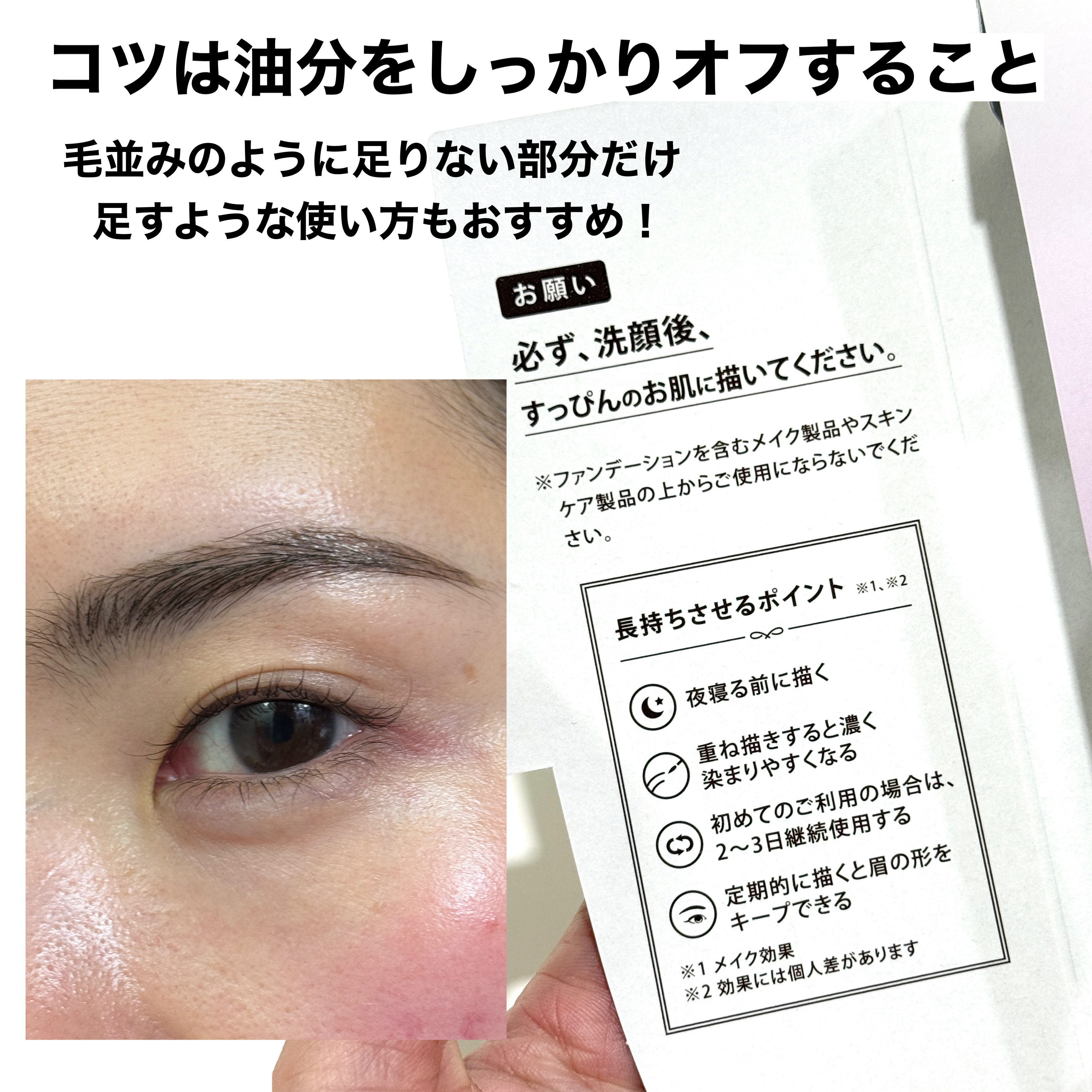 | 眉ティントランキング第5位 | 朝忙しい時も寝起きでも綺麗な眉のままなので、お泊りでも安心!3日ほど持続するので嬉しい! | 詳細を見る | |