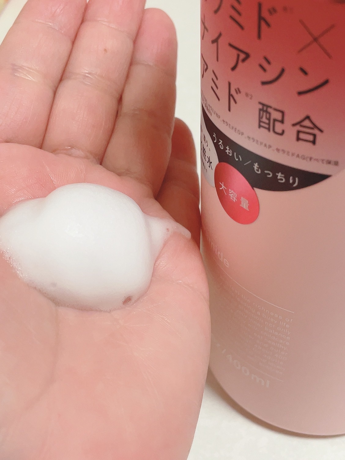 - さまざまな乾燥による肌トラブルで悩んでいる方に向けた泡化粧水。 泡で出る化粧水だからクラスターが小さく高い浸透力*。液だれや飛び散りも少なくストレスフリーな使い心地。 ヒト型セラミド5種やビタミンC誘導体3種を配合しており、保湿&整肌ケアしてくれます。 浸透性*なのでスーッとベタつかず、全身にもお使いいただけます。 ~7つのフリー処方~ 石油系界面活性剤フリー、パラベンフリー、着色料フリー、サルフェートフリー(ラウレス硫酸Na等)、シリコンフリー、鉱物油フリー、エタノールフリー 20代~30代に向けた「機能性」と「利便性」を兼ね備えた商品です。 ヒト型セラミド5種類とナイアシンアミドを保湿成分として配合して乾燥肌やゆらぎ肌の人にもおすすめです。バリヤ機能のサポート、潤いによる透明感のケアが期待でき、美肌へ導きます。また、泡で出すことで浸透*を助けています。 アロマティックラベンダーの香り *角質層まで