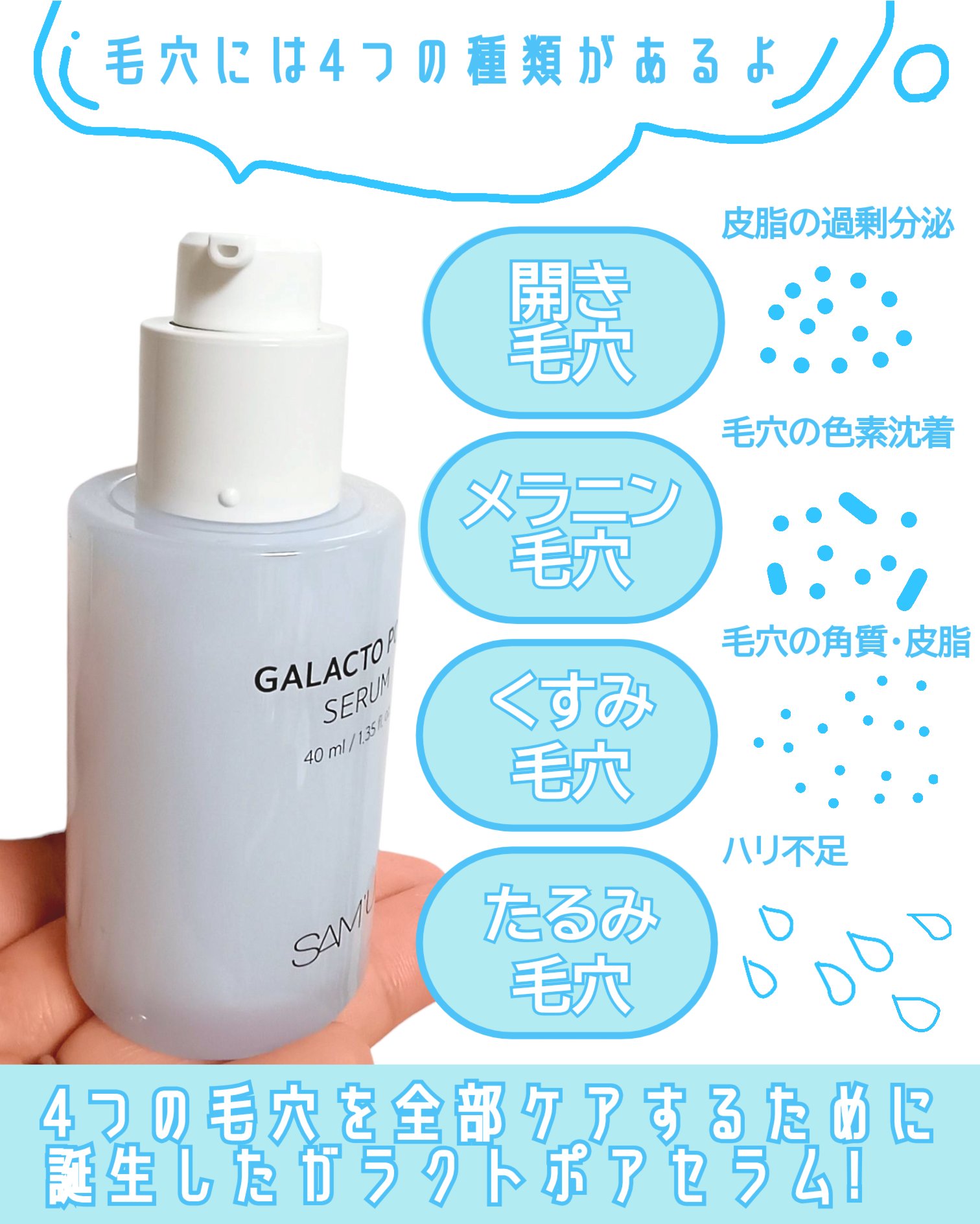 大人気韓国スキンケアSAM'Uからガラクトミセスを配合したガラクトポアシリーズが登場✨ ガラクトミセス大好きなので嬉しい🫶 毛穴を綺麗に洗浄・ケアしてくれるガラクトミセス+酸素が入った新作トナー フリフリすると酸素を含んだバブルが発生🫧 しっとりもっちり肌になるので朝より夜に使うのがおすすめ✨ 毛穴が気になる人、SAM'Uのガラクトポアシリーズチェックしてみてね☺️