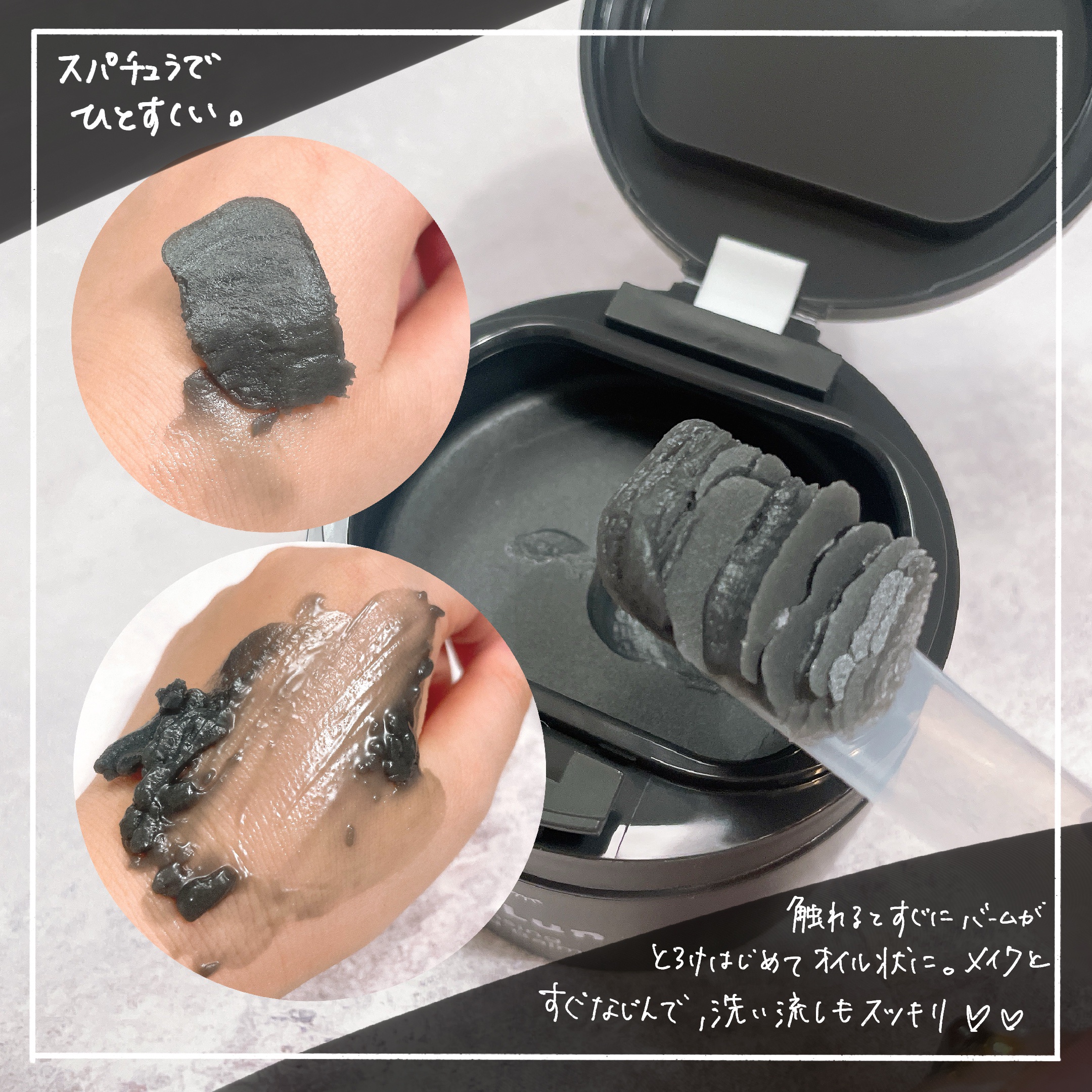 \小鼻や頬に黒ずみ毛穴にアプローチ/ ⽑⽳⽬⽴ちの原因となる⾓栓を炭とW酵素で【落とす】 ⾓栓の元となる余分な⽪脂をケアするアゼライン酸を配合で【整える】 バームが肌にのせるととけてメイク、毛穴汚れも落としてくれるのに、クレンジング後の突っ張り感もなくて使用感は良かったです。