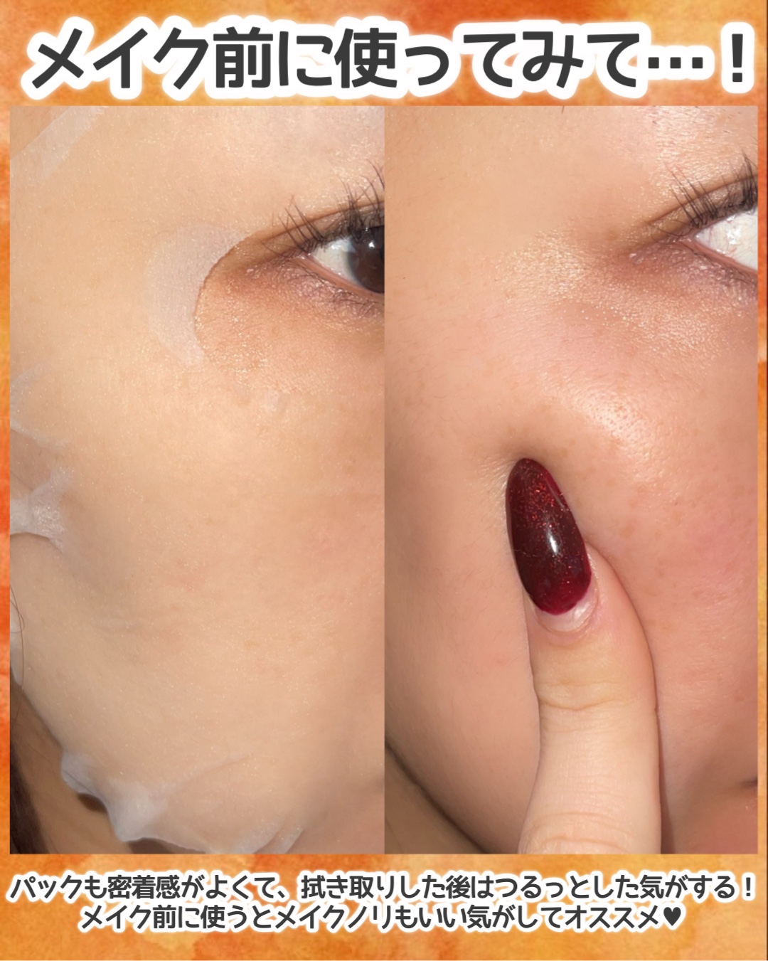 | シートがみかん色でびっくり! とろっとろの液が含まれていて 貼り付けたらぴたーっとくっついてすごく気持ちいい! | 詳細を見る | |