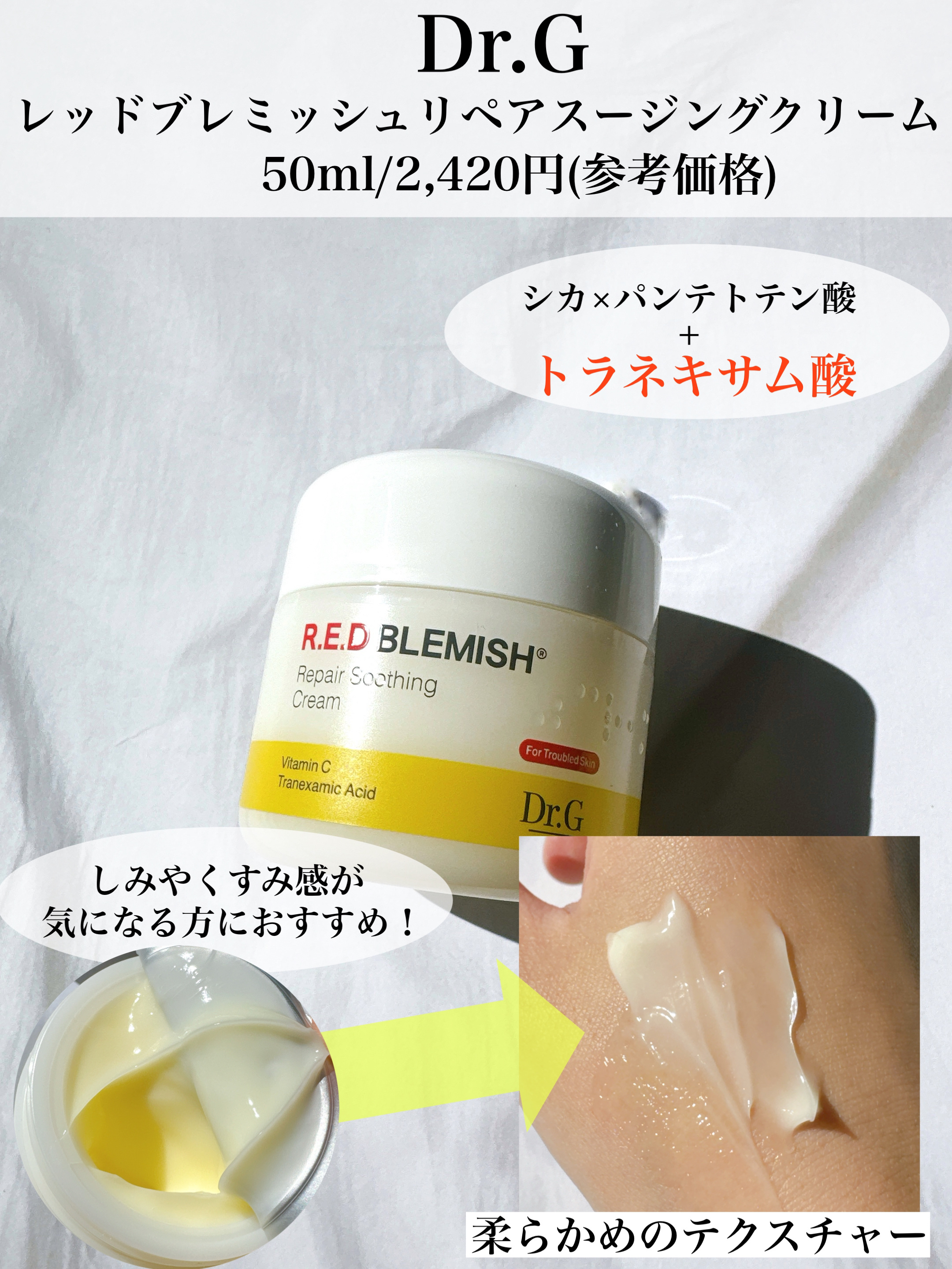 Dr.GレッドブレミッシュリペアスージングクリームDr.G様より#提供 でいただきました🍋レッドブレミッシュリペアスージングクリーム✨✨✨季節問わず活躍するクリーム💛シカ×パンテノール×トラネキサム酸ビタミンC×ナイアシンアミドでニキビ跡や色...