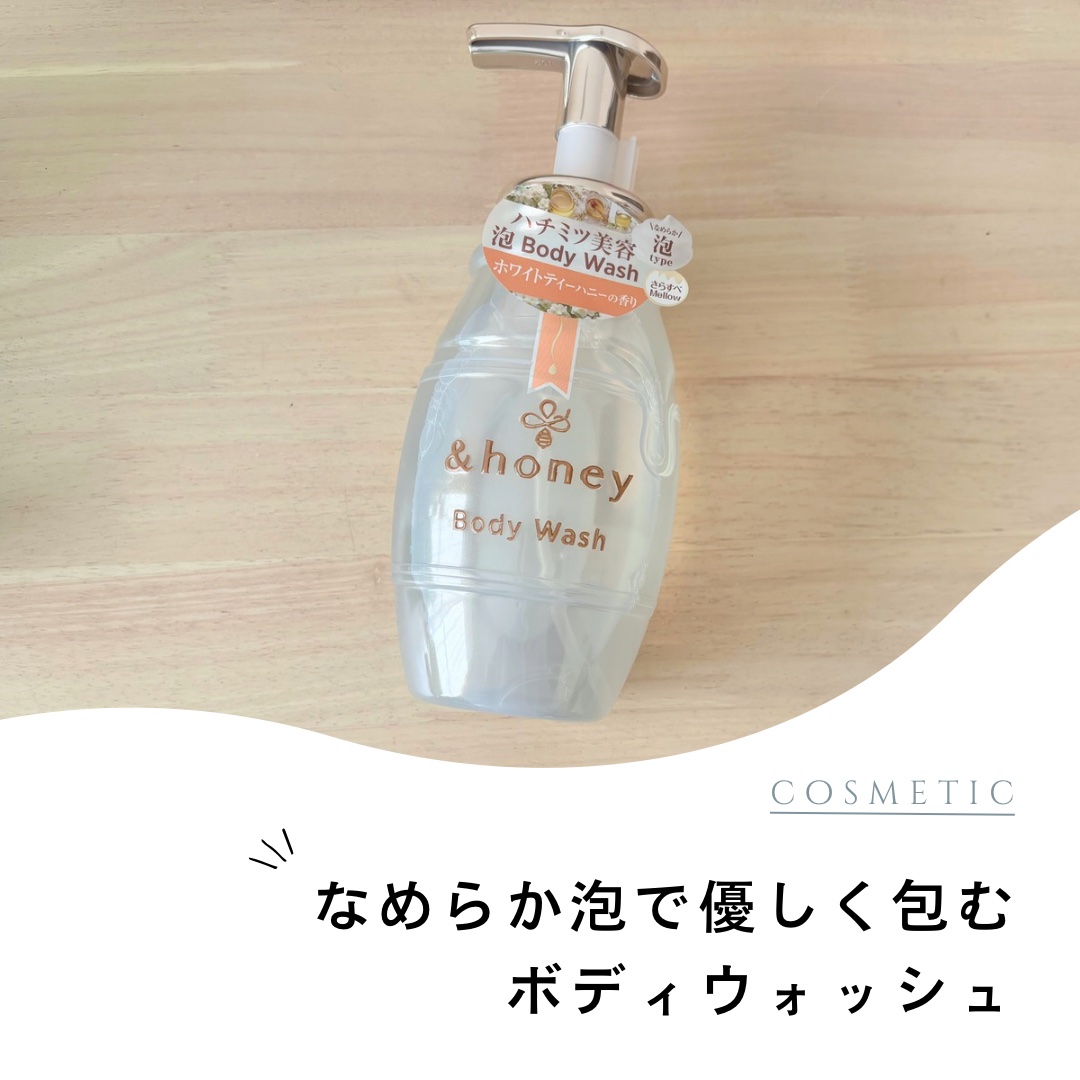- ハチミツ美容でうるおいを残しながら、 キメ細かくなめらかな泡がやさしくさらすべに洗い上げる泡ボディウォッシュ。 製品の90%以上をハチミツ*1をはじめとして、高保湿ヒアルロン酸*2・アルガンオイル*3などのうるおい成分*4で構成*5し、さらに8つの無添加・フリー処方*6で、お肌のことを考え「低刺激性処方」を追求しました。 爽やかで透明感のあるホワイトティーハニーの香りでバスタイムを至福のひとときへ ▼こんな方におすすめ ○お肌をやさしい使用感で、いたわりながら洗いたい方 ○さらすべな仕上がりが好きな方 ○ホワイトティーの香りが好きな方 サルフェート(ラウレス硫酸Naなど)・鉱物油・アルコール・石油系界面活性剤・ 合成着色料・シリコン・動物実験(製品として)・防腐剤フリー *1 保湿 *2 アセチルヒアルロン酸Na(保湿) *3 アルガニアスピノサ核油(保湿) *4 保湿・整肌成分の総称 *5 基剤を除く、水を含む *6 サルフェート(ラウレス硫酸Naなど)・鉱物油・アルコール・石油系界面活性剤・合成着色料・シリコン・動物実験(製品として)・防腐剤