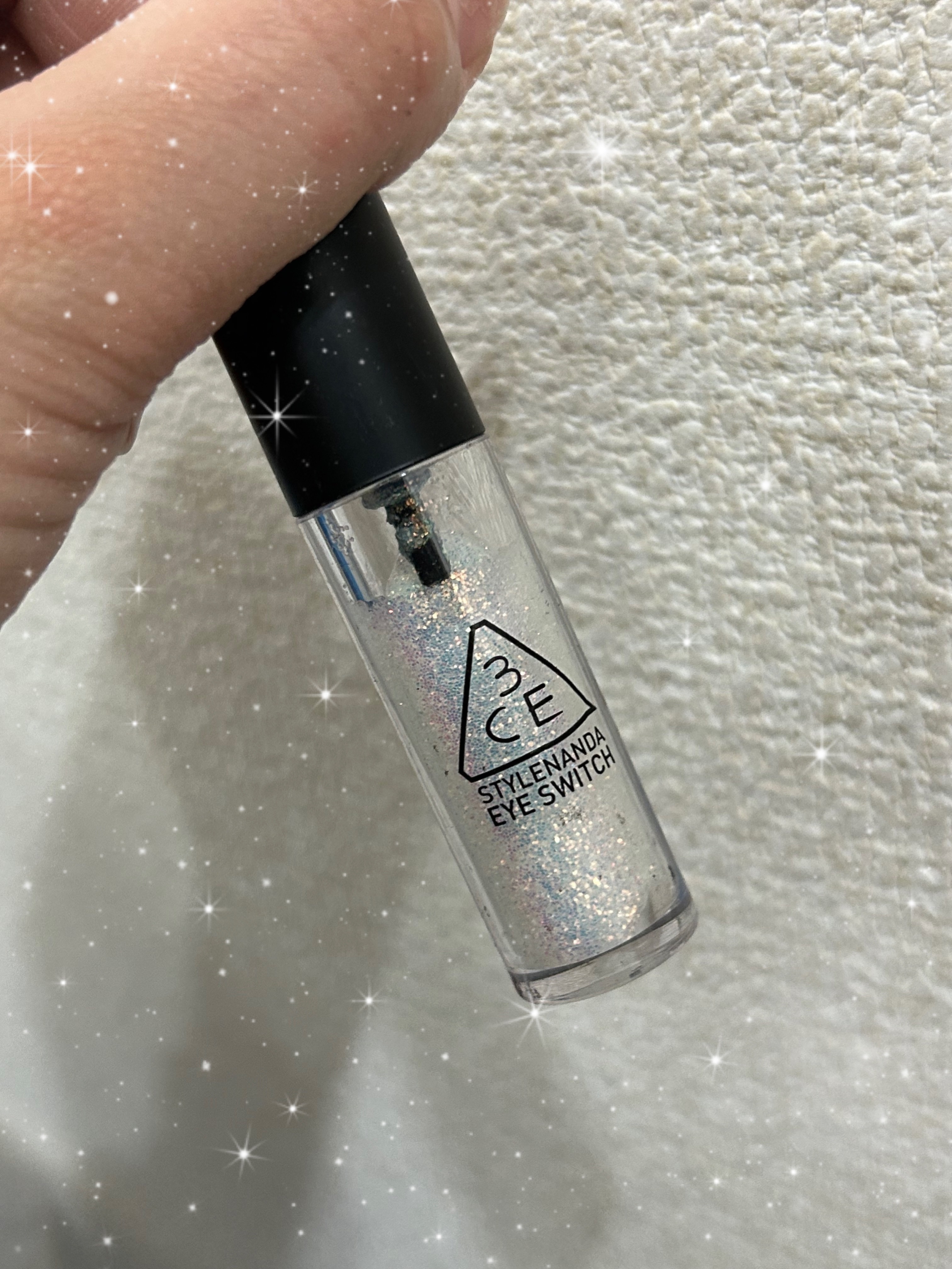 - きらめく多色ラメ。まるで星空 目元に存在感、簡単オン ■輝きも色味も自在なグリッター 大小さまざま、色味も豊かな多色ラメが目元にきらめきを。 薄づきだからやりすぎないのに、しっかり存在感。 ■塗りやすい極細チップ やわらかいゴム製アプリケーターで 細かい部分にも塗りやすいから、繊細な輝きを簡単オン ■ケア成分*1配合。明るい*2目元印象に ビタミンE*3とシアバター*4配合で目元にうるおいをプラスしかも、お湯で簡単オフ *1 グリセリン:保湿・保水成分 *2 メイクアップ効果による *3 酢酸トコフェロール:整肌成分 *4 シアバター(シア脂):油性基剤 ※注釈3・4は3CE アイスイッチに配合。