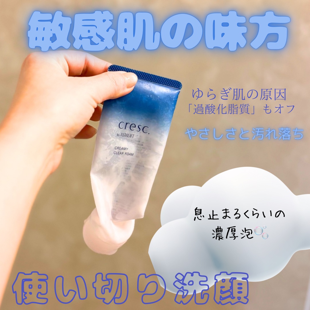 クレスク様から商品をいただきました❤富士フイルムさんから発売されてる、敏感肌さんにおすすめのブランド✨cresc.byASTALIFTから、今回こちらの2つをお試しさせて頂きました。クレスクbyアスタリフトクリーミークリアフォーム:120g2...