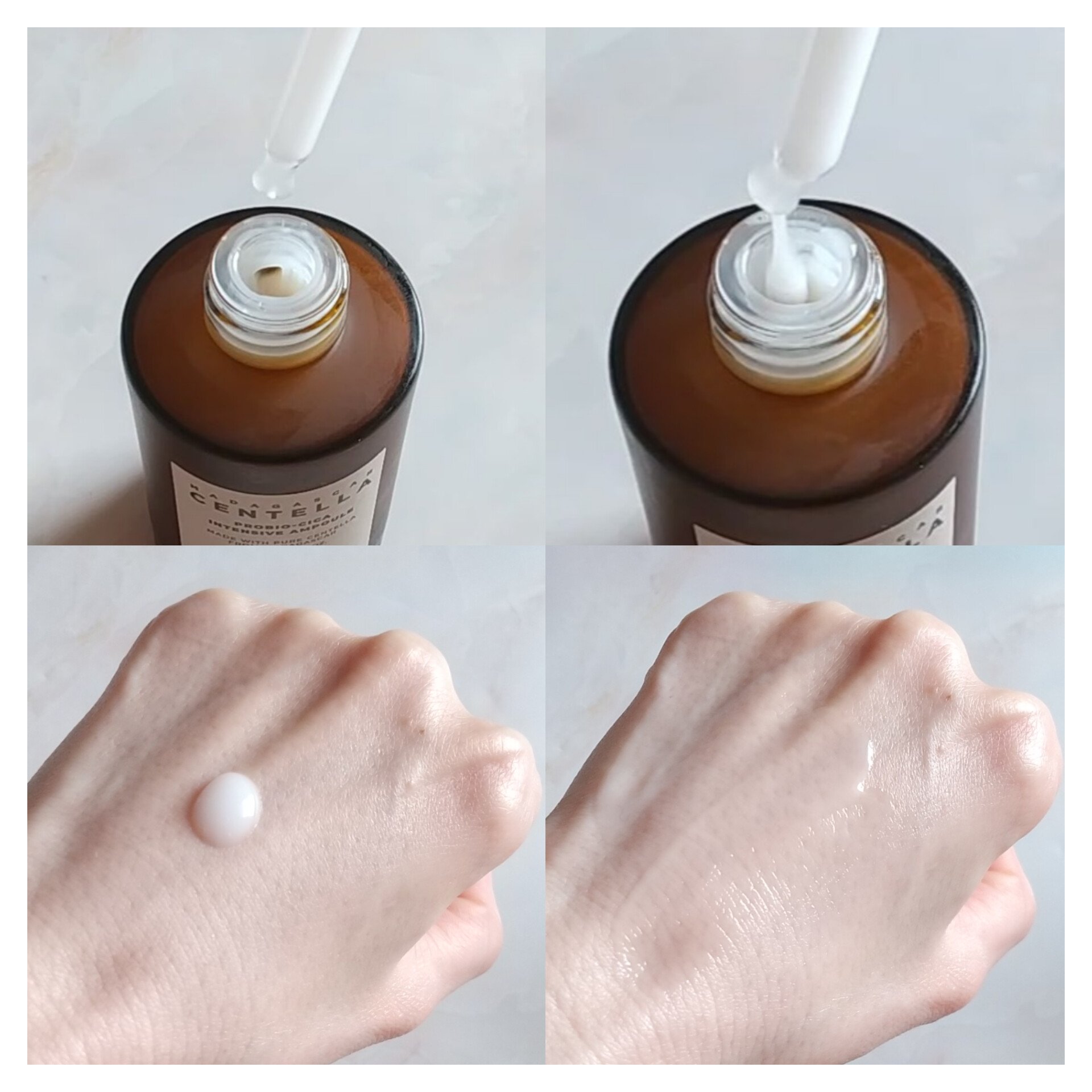 崩れた肌バリアをケア🌱 乳酸菌+発酵ツボクサが肌を素早く鎮静 🌱 アップグレードされた発酵センテラをそのまま詰め込んだ高濃縮美容液 とろみのあるもちっとした乳白色のアンプル 肌馴染みも良くてベタつきも感じず、メイク前にも使えるの💡