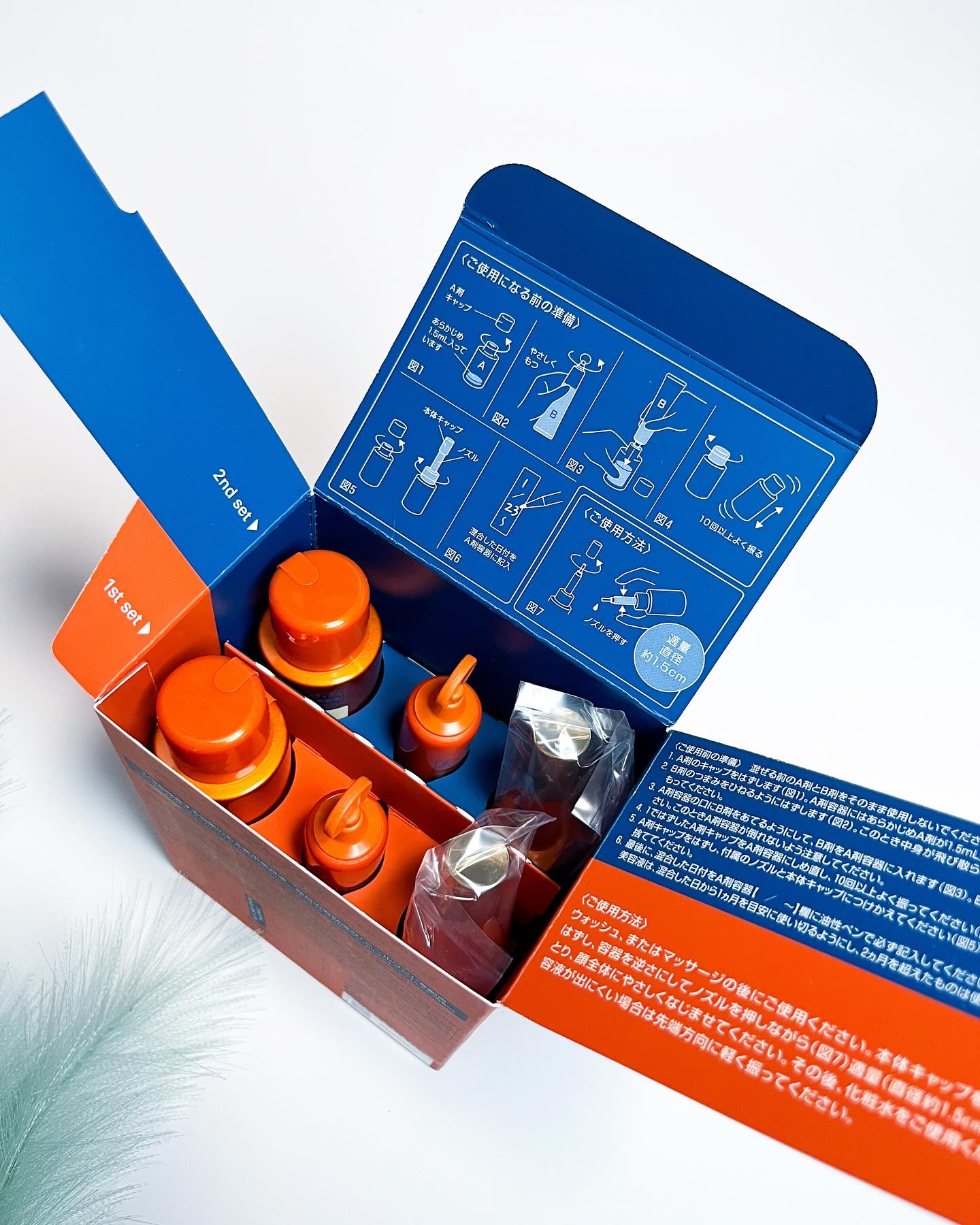 - A剤<ガラスびん>1.5mL×2、B剤<チューブ>13.5mL×2、ノズル・本体キャップ×2: 19,800円