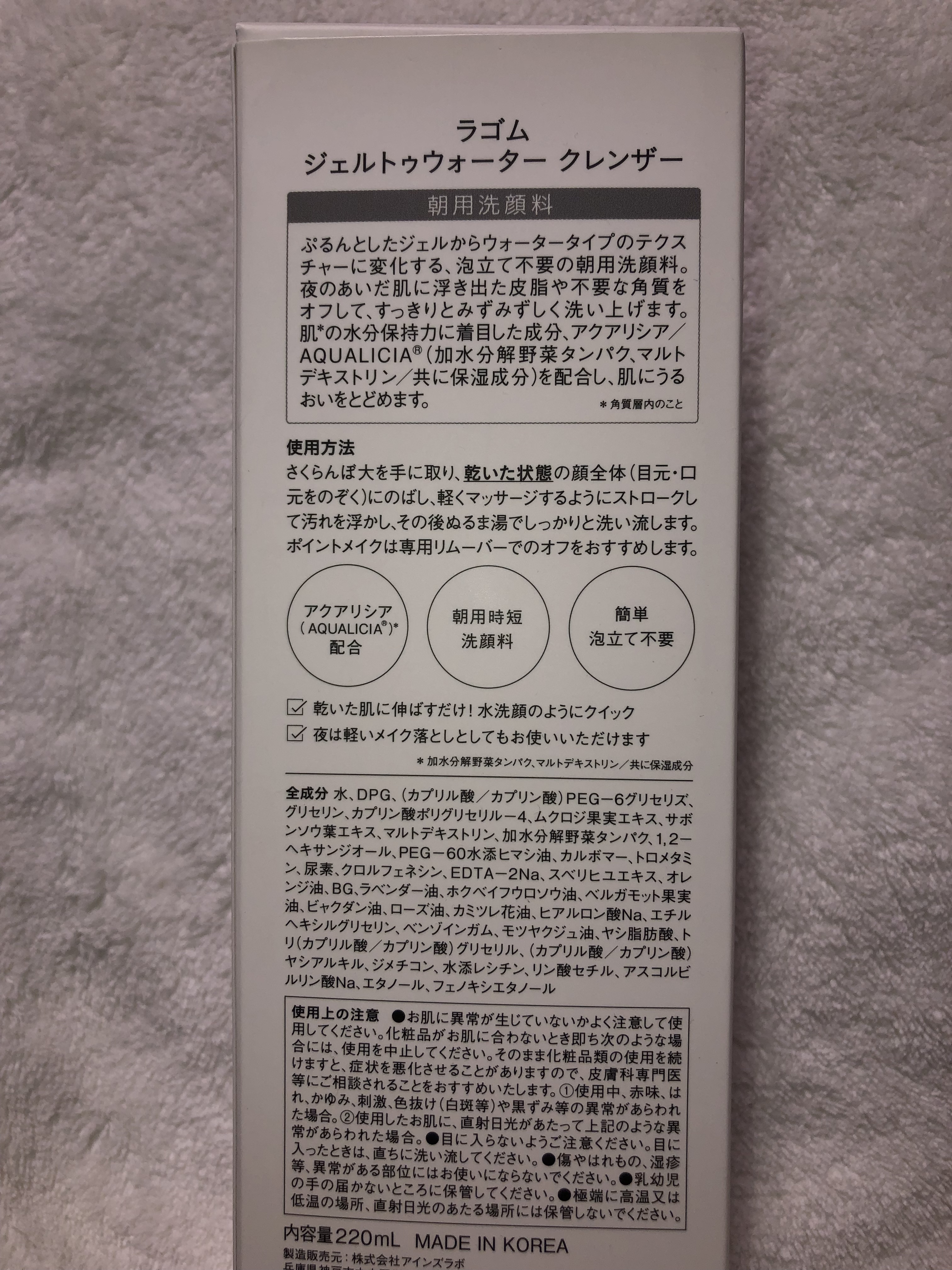 \泡だてたくない朝にピッタリ/📝LAGOMジェルトゥウォータークレンザー220ml朝用洗顔¥2,310特徴⇩・乾いた肌に伸ばして洗い流す・泡だて不要で時短ケア・うるおい成分「アクアリシア」配合・皮膚低刺激性試験済み・乾燥肌・敏感肌にも朝用ジェ...