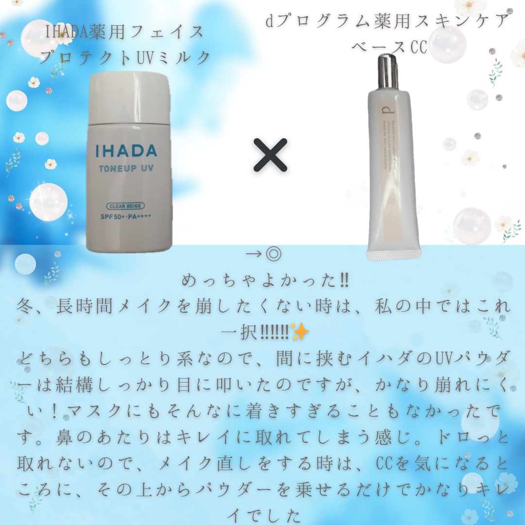 花粉の季節、お仕事の日じゃなくお休みの日の軽めに仕上げたい時のアイテム! 緩いテクスチャーで塗り乳液や美容液のようにスルスルッと伸びます◎ 花粉の季節の大切な味方💁♀️