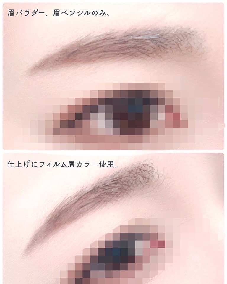 - \\25年3月定番新色モカグレージュ発売// 「フィルム眉カラー」なら眉の印象を自然にやわらげ、ふんわり質感の垢抜け眉に! 1.塗りやすい極小ブラシ ・ 先端直径3mmで、地肌に液がつきにくく根元から色づける ・余分な液がつかない設計で、ティッシュオフ不要 2.眉専用フィルム液 ・眉毛1本1本にキレイに色付き、自眉の黒さをやわらげる ・タバになったり、パリッと固まったりせず、まるで自眉のような仕上がり ・皮脂・汗・こすれに強いのにお湯で簡単オフ (※2025年9月以降、商品パッケージをリニューアル。)